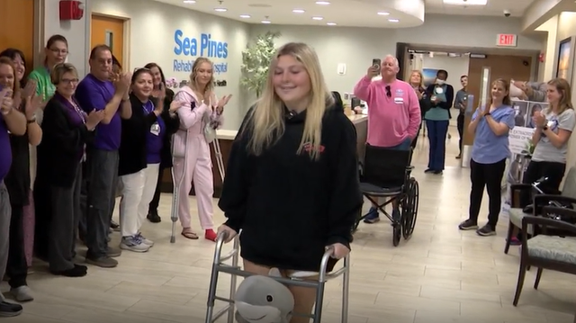 The two sat side by side on Friday after Rileigh’s last day at Sea Pines Rehabilitation in Melbourne. She had one final physical therapy session before ringing the warrior bell.
