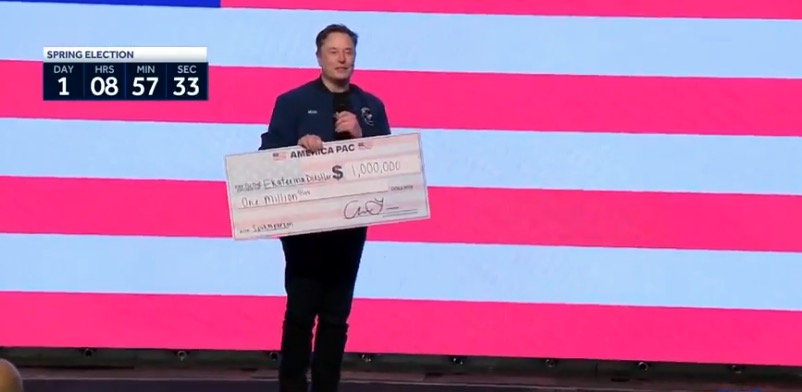 Musk handed out two $1 million checks to two people in the crowd, and he said he had signed a petition against “activist judges.” He originally said the payments would be made to two Wisconsin voters, which Democrats argued violated the state’s bribery laws.