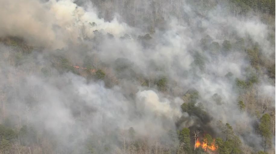 The New Jersey Forest Fire Service said the wildfire burning in the Peaslee Wildlife Management Area in Cumberland County was spotted by the Belleplain Fire Tower just before 12:30 p.m. Friday. As of 10 a.m. Saturday, the fire has burned 1,000 acres and is 50% contained.
