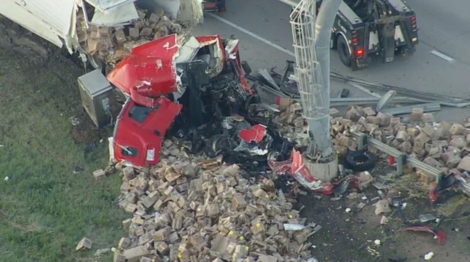 According to Aurora police, the semi driver said he was driving when he swerved to avoid traffic that had suddenly stopped. The semi was the only vehicle involved in the crash.