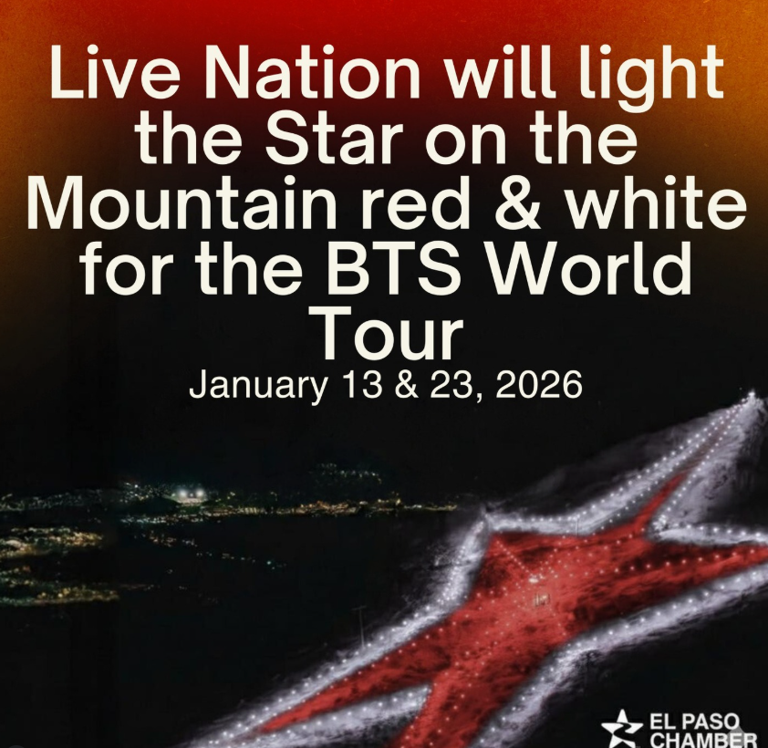 Update (4:12 PM): The El Paso Chamber says that Live Nation will light the Star on the Mountain red and white in honor of the BTS World Tour coming to El Paso.