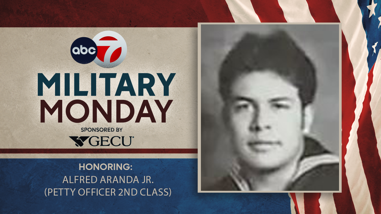 Today we are recognizing Alfred Aranda Jr. He served in the U.S. Navy for 5 years and the Navy Reserve for 12.