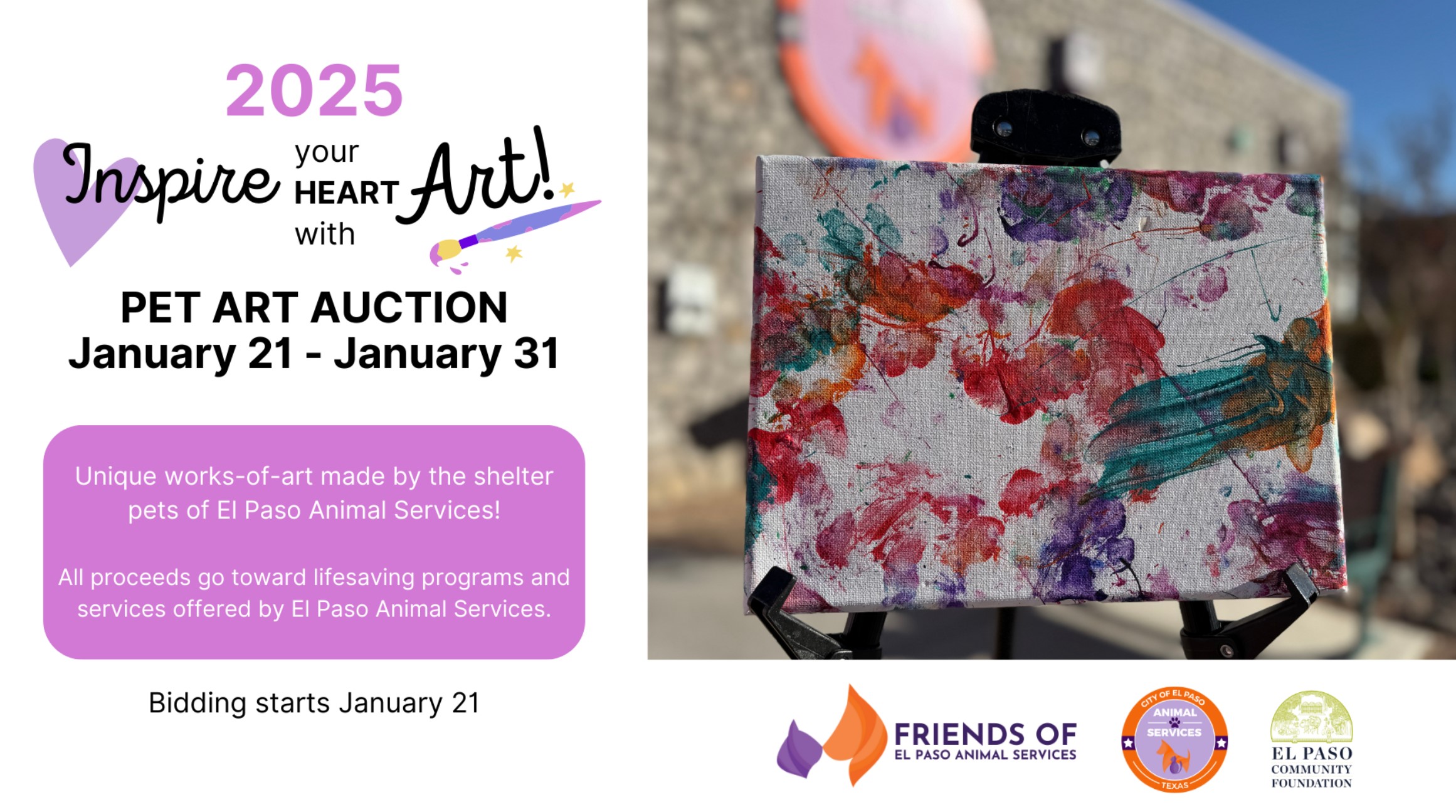 EL Paso, TEXAS (KVIA) -- El Paso Animal Services announced the third annual Inspire Your Heart with Art Day Virtual Auction. This was done in collaboration with Friends of El Paso Animal Services. The auction starts January 21st and runs until January 31st, 2025.