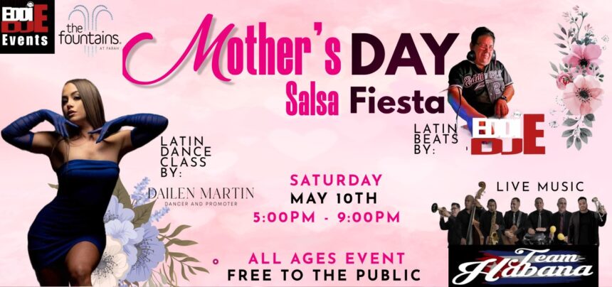 El Paso, TX (KVIA-TV)— The Mother's Day Salsa Fiesta is happening on the Mother's Day weekend, Saturday, May 10, 2025, and will take place from 5 pm – 9 pm at the Fountains at Farah Pavilion. There will be a free Latin dance class with world champion dancer and instructor Dailen Martin and a live musical performance with the Havana team. There will be a dance performance, a Mother's dance contest, and Raffles. There will be a dance social with great Latin music and social dancing (salsa, bachata, merengue, cumbia, and cha cha) throughout the event.