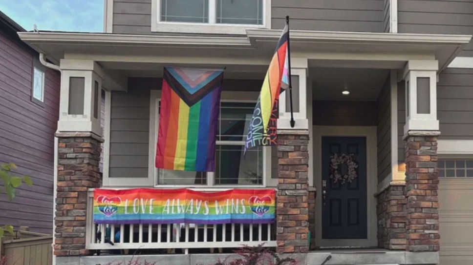 She is proud to put out the LGBTQ+ Pride Flag. Three times, what she believes is the same man, has visited her home at night in the Harvest Junction Village neighborhood in Longmont to steal her flags. A man with clothing that covers him and with a concealed face has ripped their Pride flags down.