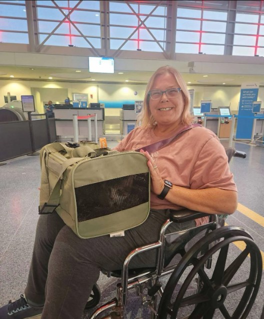 Then just days ago, a volunteer answered the call. Brandy Sanders Lee coordinated with her cousin, Cassi Yarnell Borges, who was flying to Las Vegas for a visit. Borges was willing to take Katerina as her carry-on. She has a history in animal rescue and also family military ties, Nix said.