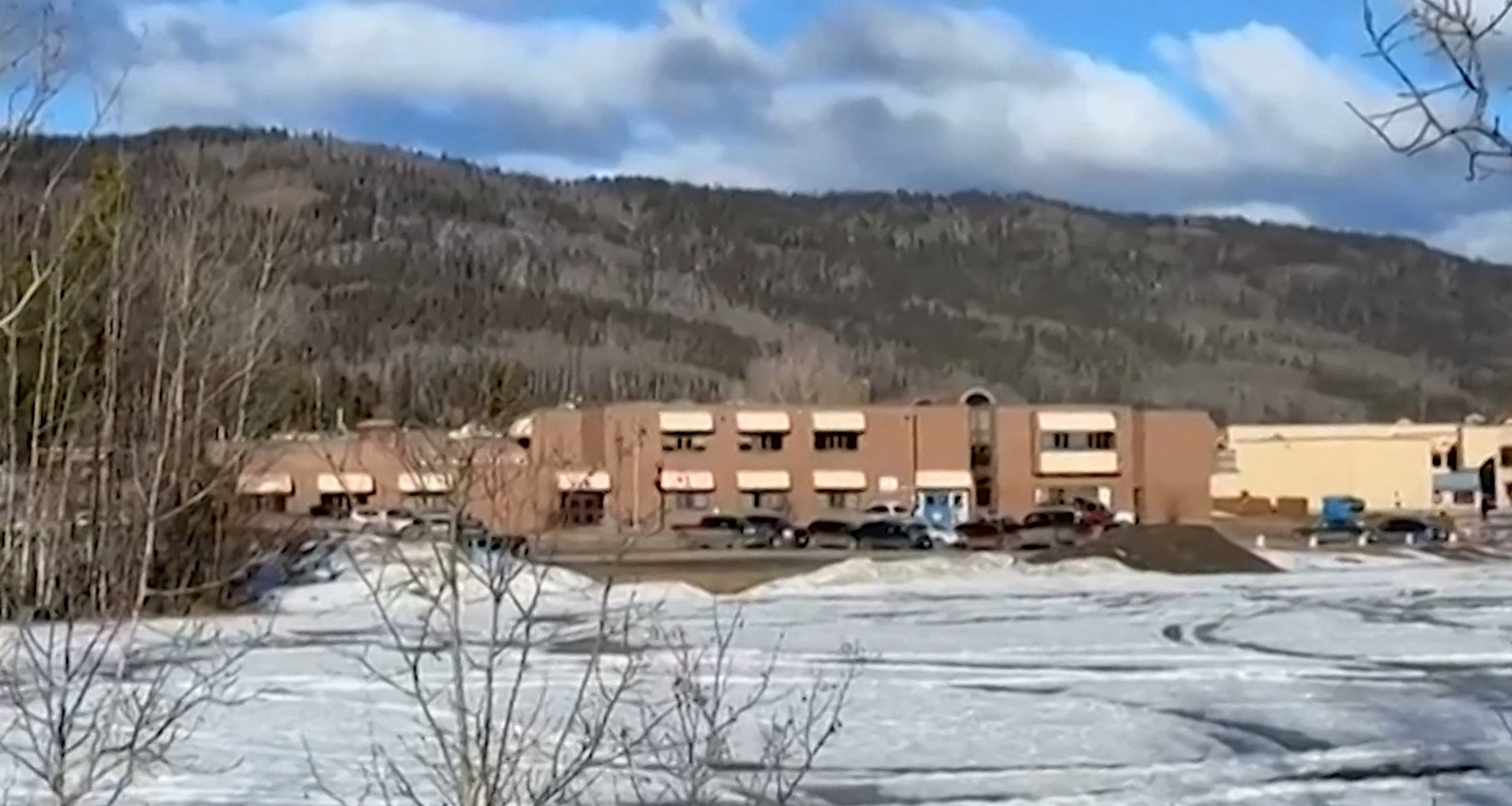 This screengrab of a video shows the middle school and high school building where a shooting took place, leaving at least nine people dead in the small town of Tumbler Ridge, British Columbia, February 10, 2026.Trent Ernst/AFP via Getty Images