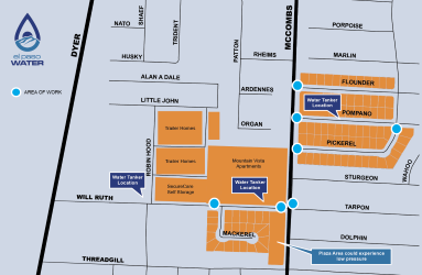 EP Water says residents should store water in advance before the outage but will have three water tankers will be available starting at 9 a.m. at the following locations: