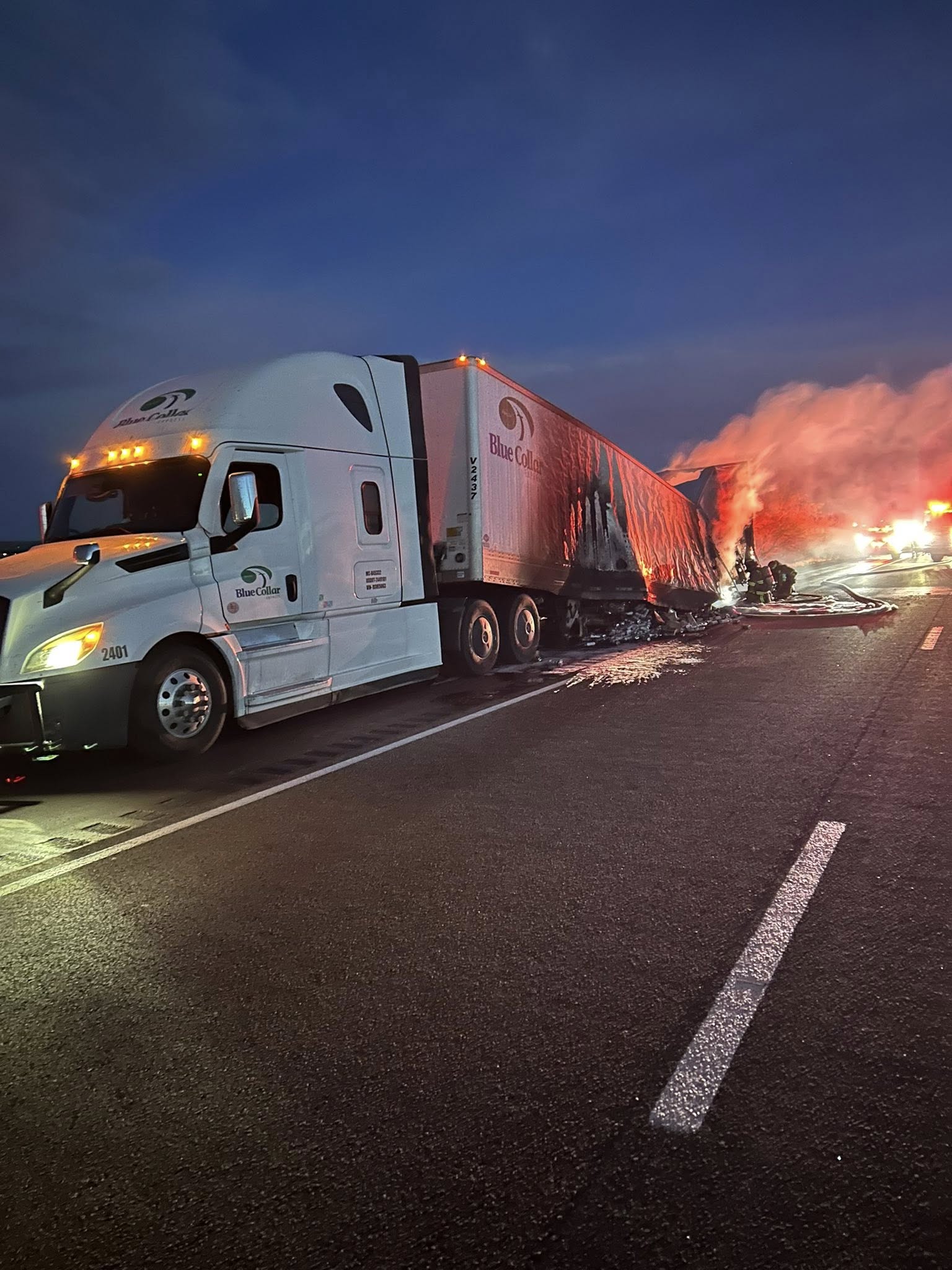 Officials say all lanes were closed and the fire was successfully put out.