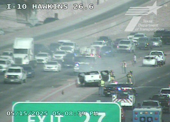 The TXDOT cameras in the area show the truck pulled over to the side of the highway and smoke surrounding it.