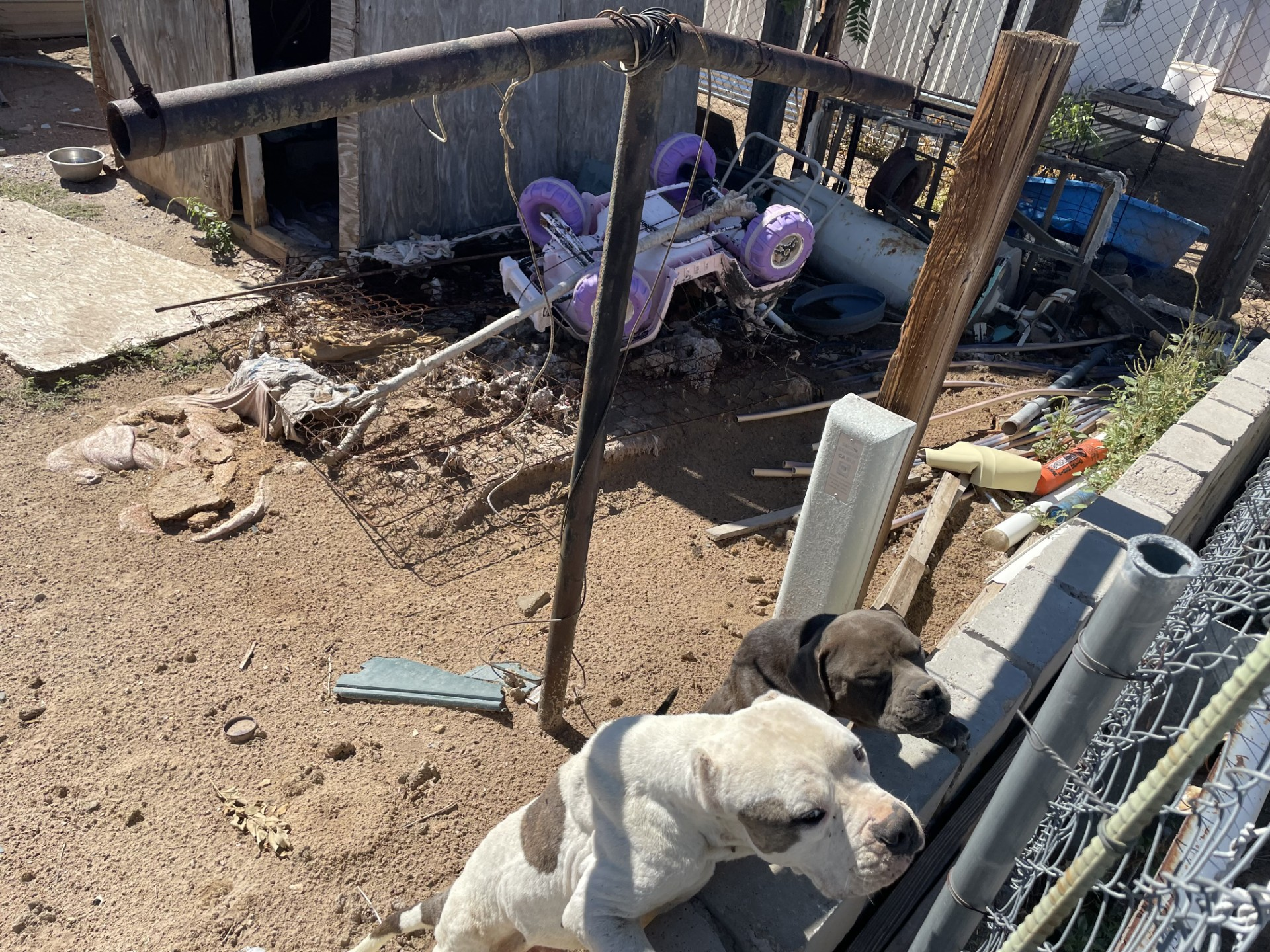 Deputies found two pit bulls in Solis' backyard in Fabens. Officials say the dogs were suffering from severe neglect, were severely malnourished, and were infested with ticks.