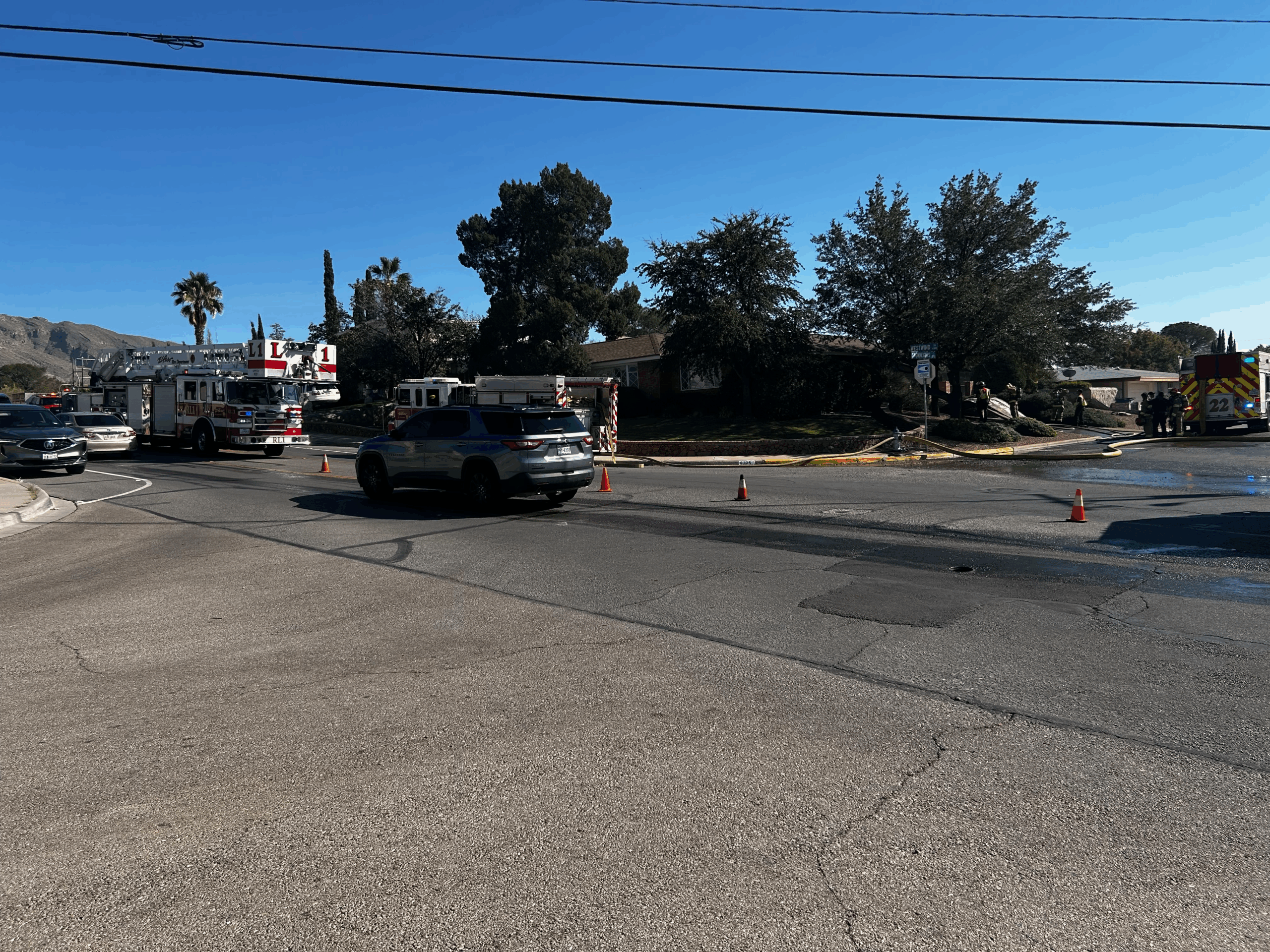The fire happened near the intersection of Westwind Drive and Snow Heights Court at 2:46 p.m.