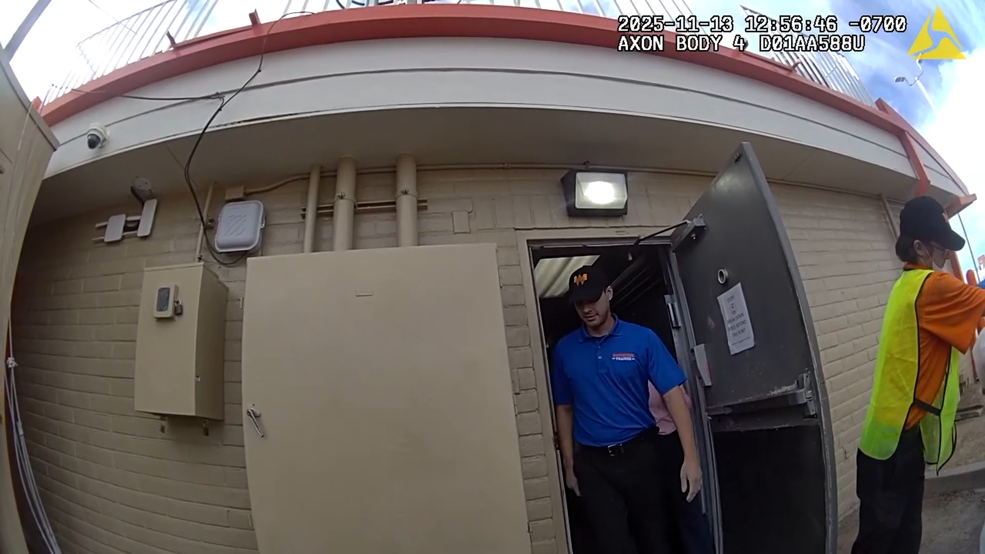 Bautista is shown exiting from the backdoor of the Whataburger, wearing a Whataburger employee's uniform.