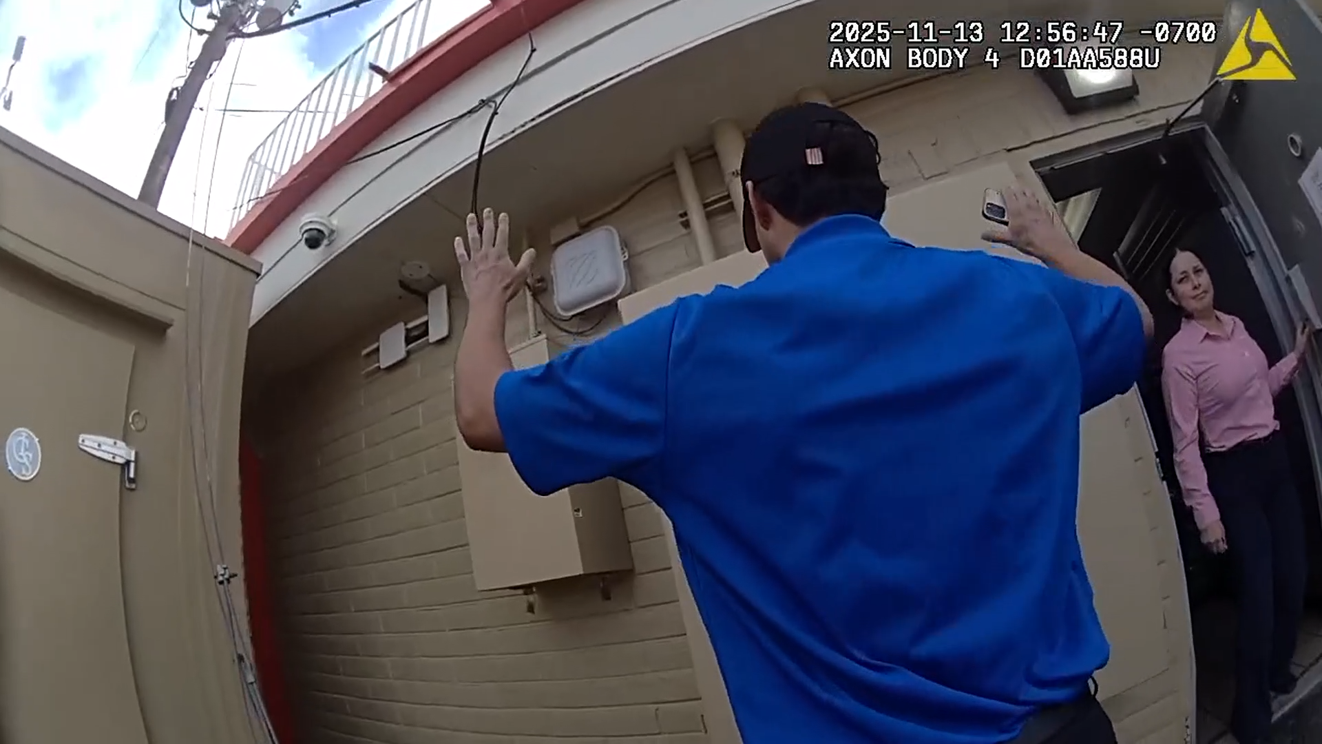 In the body camera video, Bautista is shown putting his hands up and allowing the deputy to arrest him.