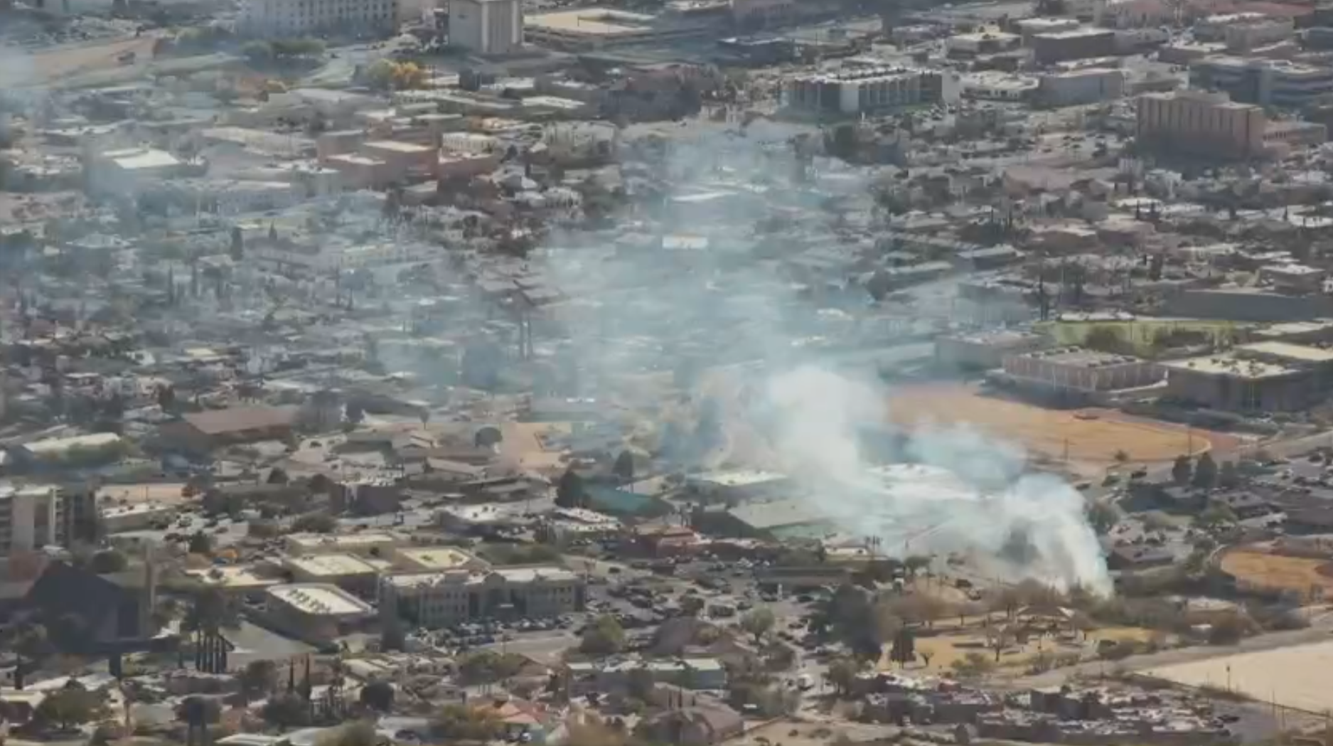 EL PASO, Texas (KVIA) -- A fire is burning near El Paso High School. The ABC-7 Mountain Camera shows smoke rising from the fire, and shows firefighters spraying water onto the fire.