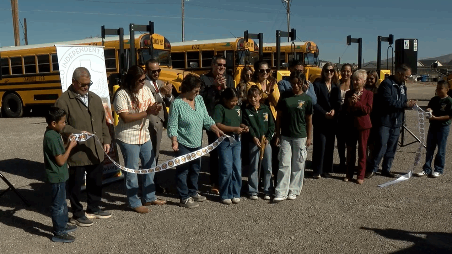 The new buses will help create a quieter ride for students and reduce pollution in the area, according to a school district spokesperson. The school district held a ribbon cutting ceremony at their Transportation Facility. The Canutillo High School Band and the Canutillo High School Cheer Team performed at the ribbon cutting ceremony.
