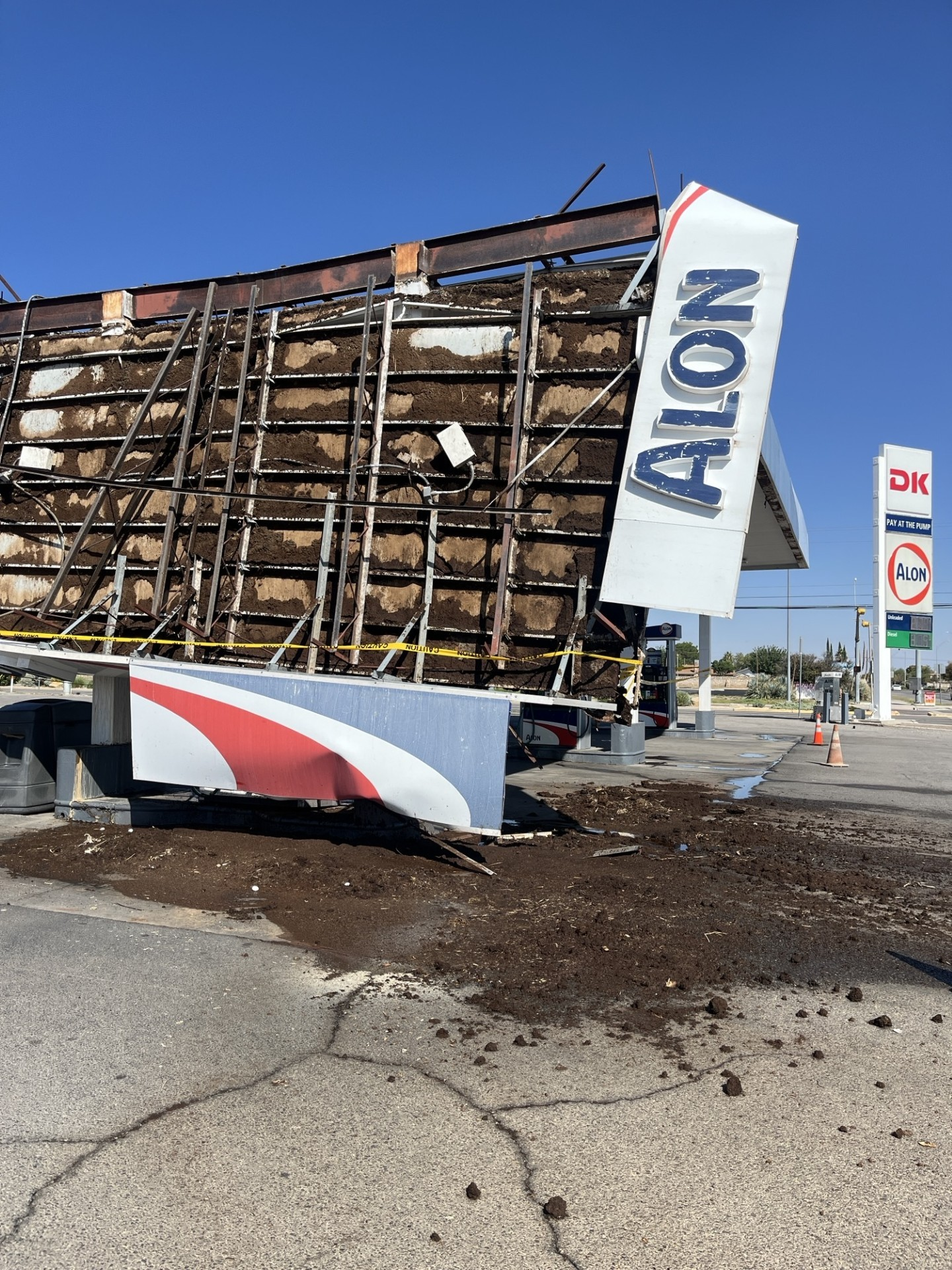 An ABC-7 crew at the scene saw the collapsed awning surrounded by debris that seems to have fallen off of the structure.