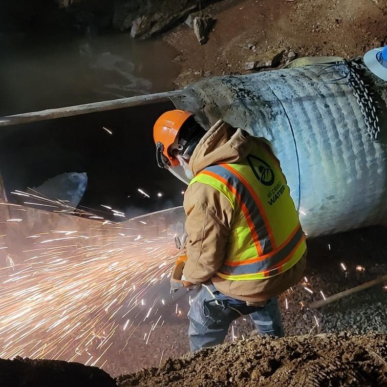 Update (3:12 PM): El Paso Water says that repairing the 36-inch broken water main has been difficult. Today crews are installing and welding the new pipe in place. The company will then slowly restore water by repressurizing the system slowly to avoid future breaks.