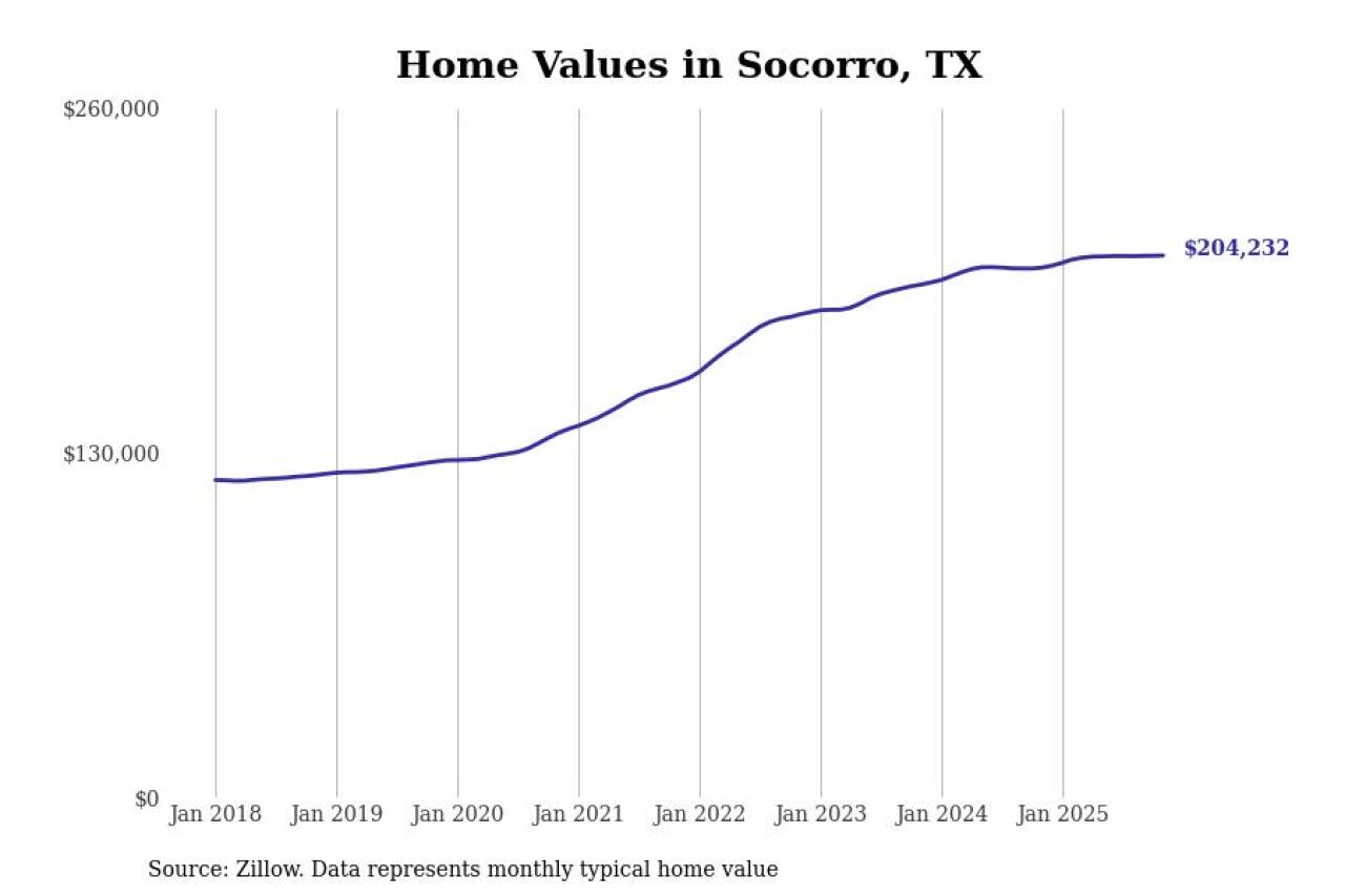 Stacker compiled a list of cities with the most expensive homes in the El Paso, TX metro area using data from Zillow. Charts show the monthly typical home value since January 2018.
