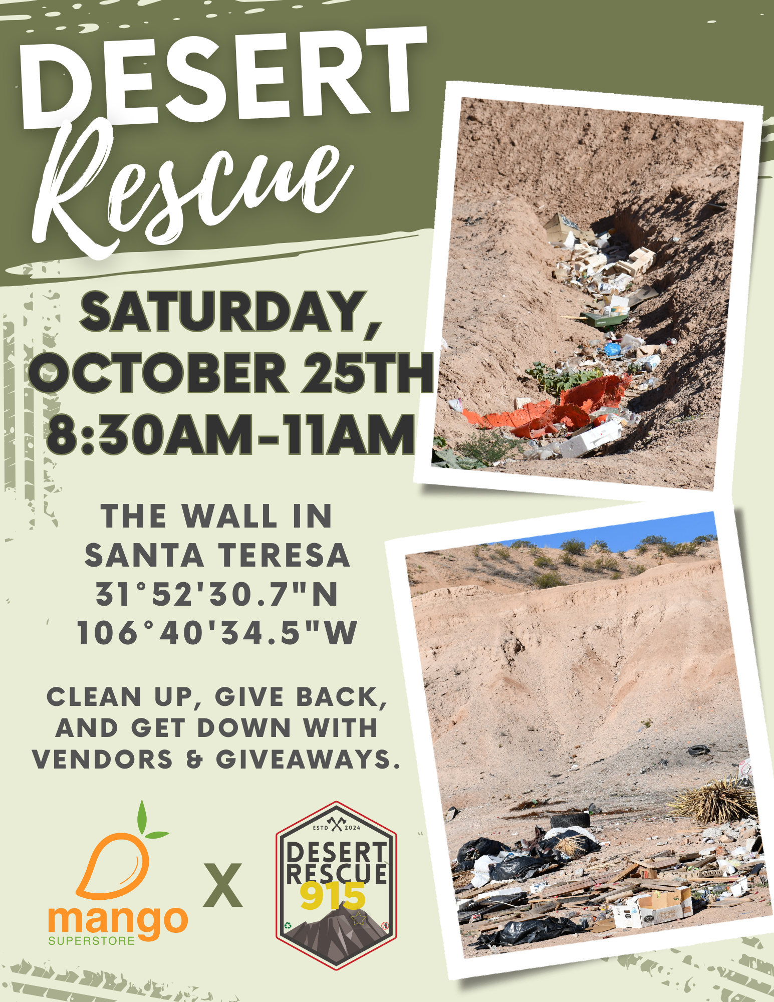 SANTA TERESA, New Mexico (KVIA) -- Mango Cannabis is organizing a community cleanup event happening Saturday, October 25, 2025 at The Wall in Santa Teresa.