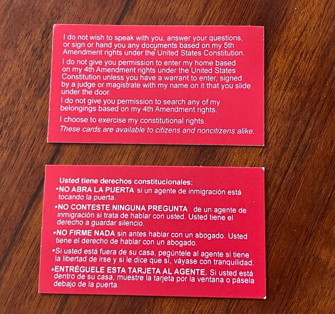 As the service ended, people were given cards, written in English and Spanish, explaining the constitutional rights of immigrants and how to respond to immigration agents if questioned.