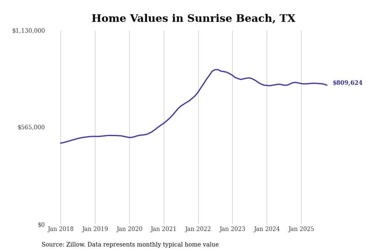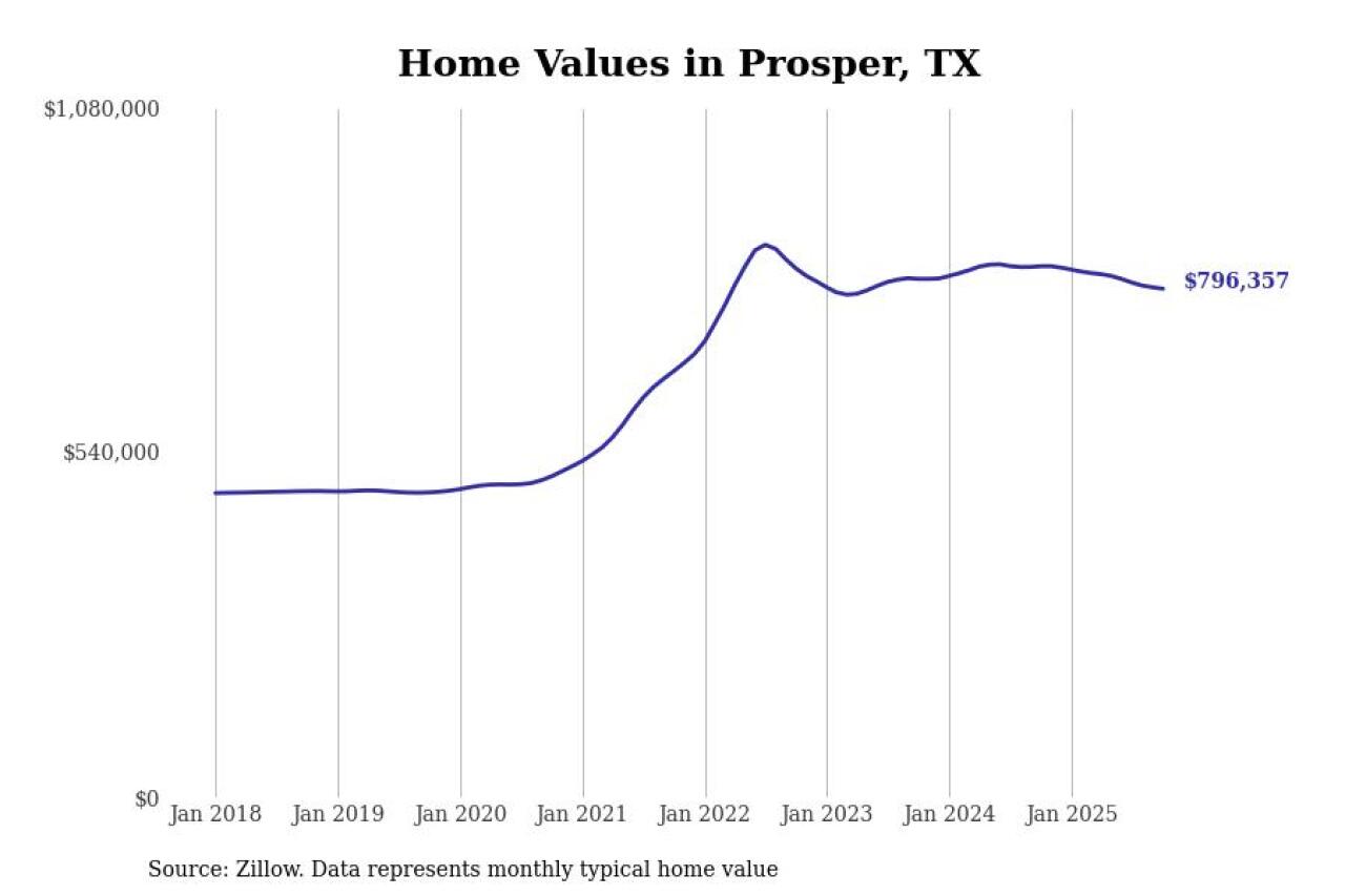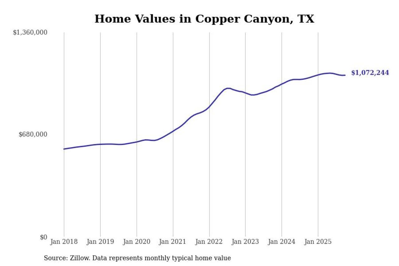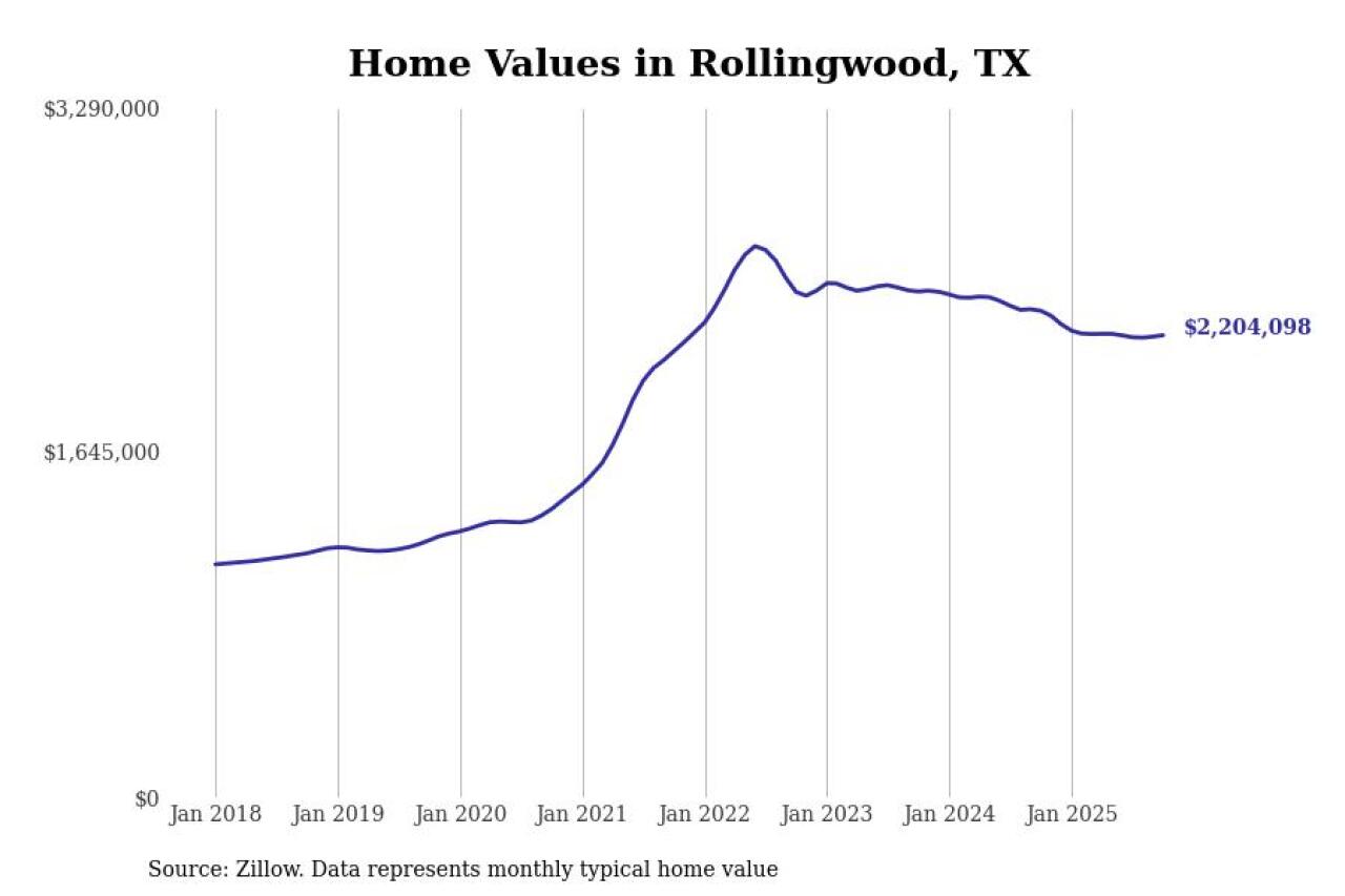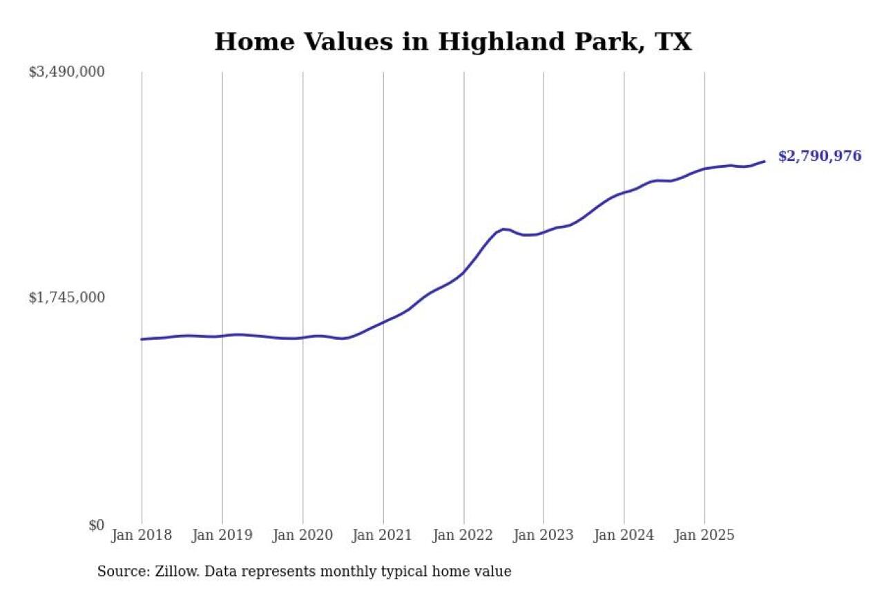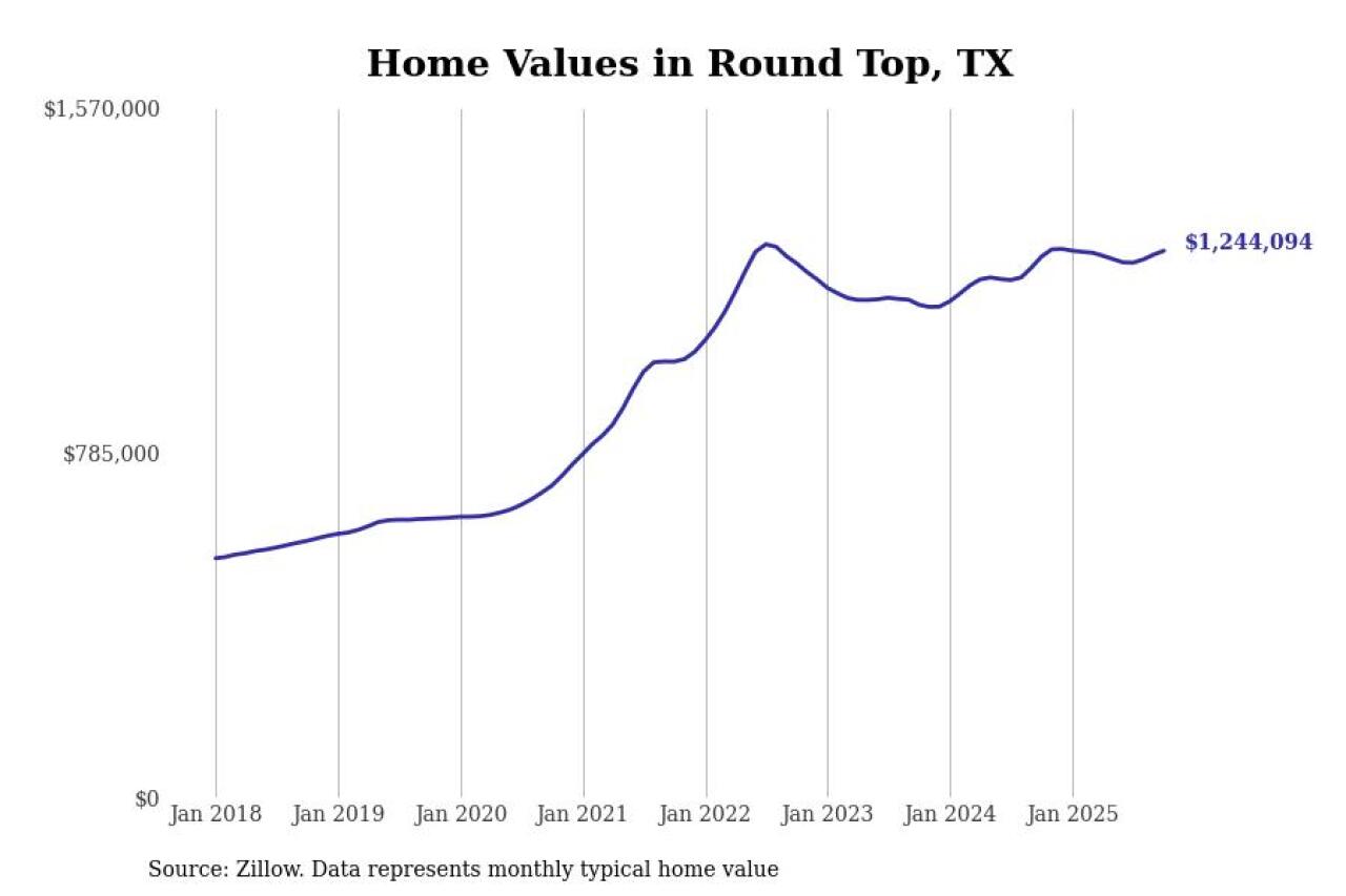 Stacker compiled a list of cities with the most expensive homes in Texas using data from Zillow. Cities are ranked by the Zillow Home Values Index for all homes as of October 2025. The charts in this story were created automatically using Matplotlib.