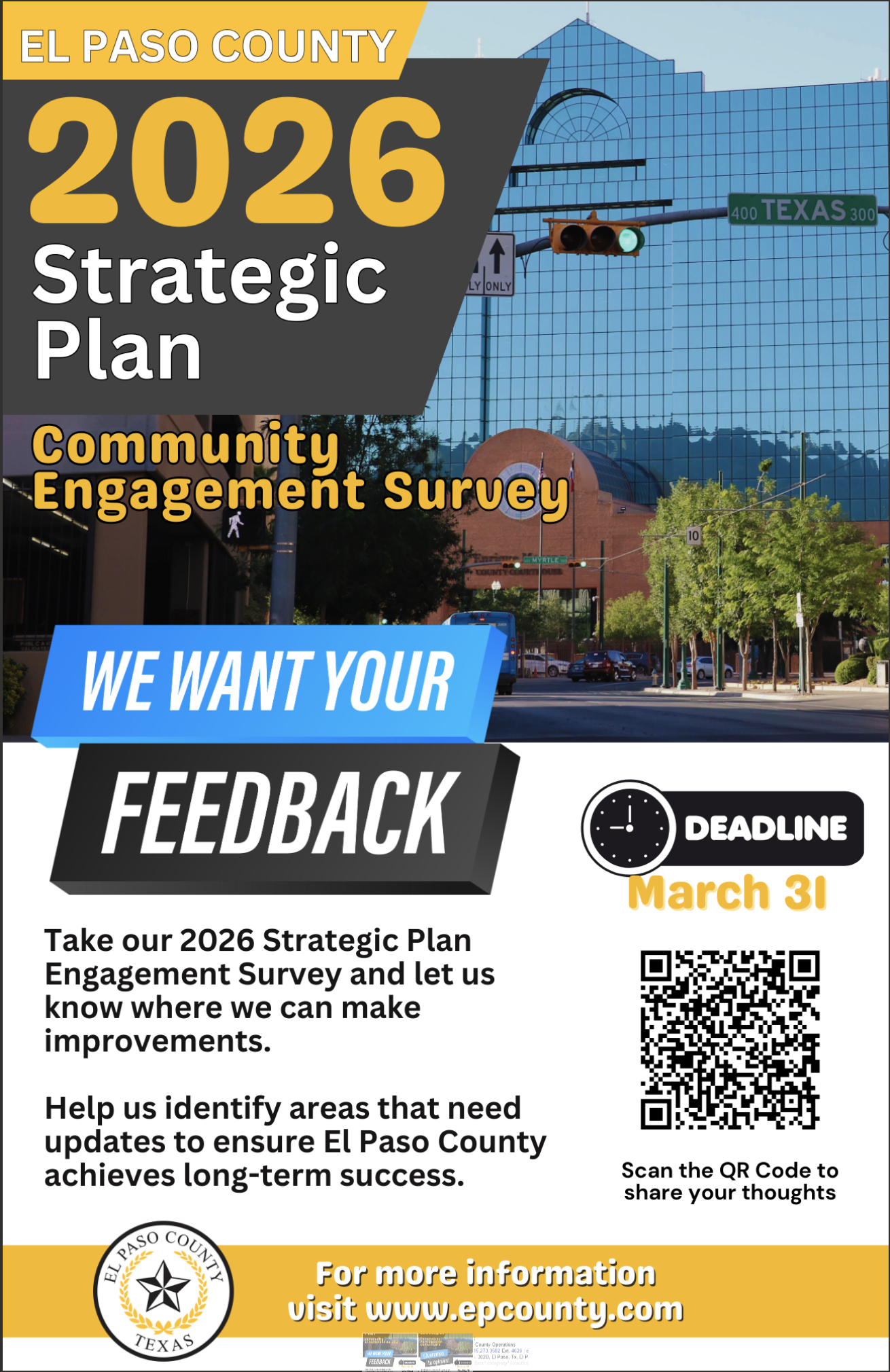 EL PASO, TX — El Paso County leaders are asking residents to participate in a public survey as they develop the 2026 Strategic Plan, which aims to improve infrastructure, economic growth, and overall quality of life.