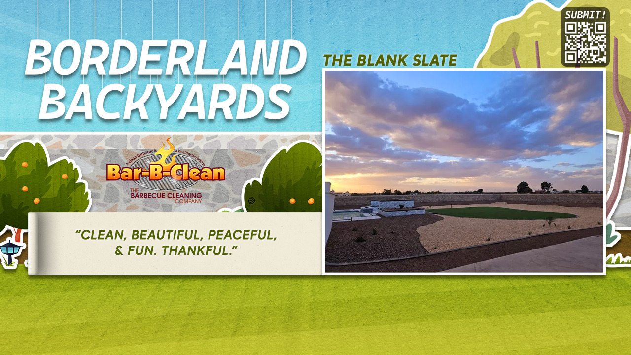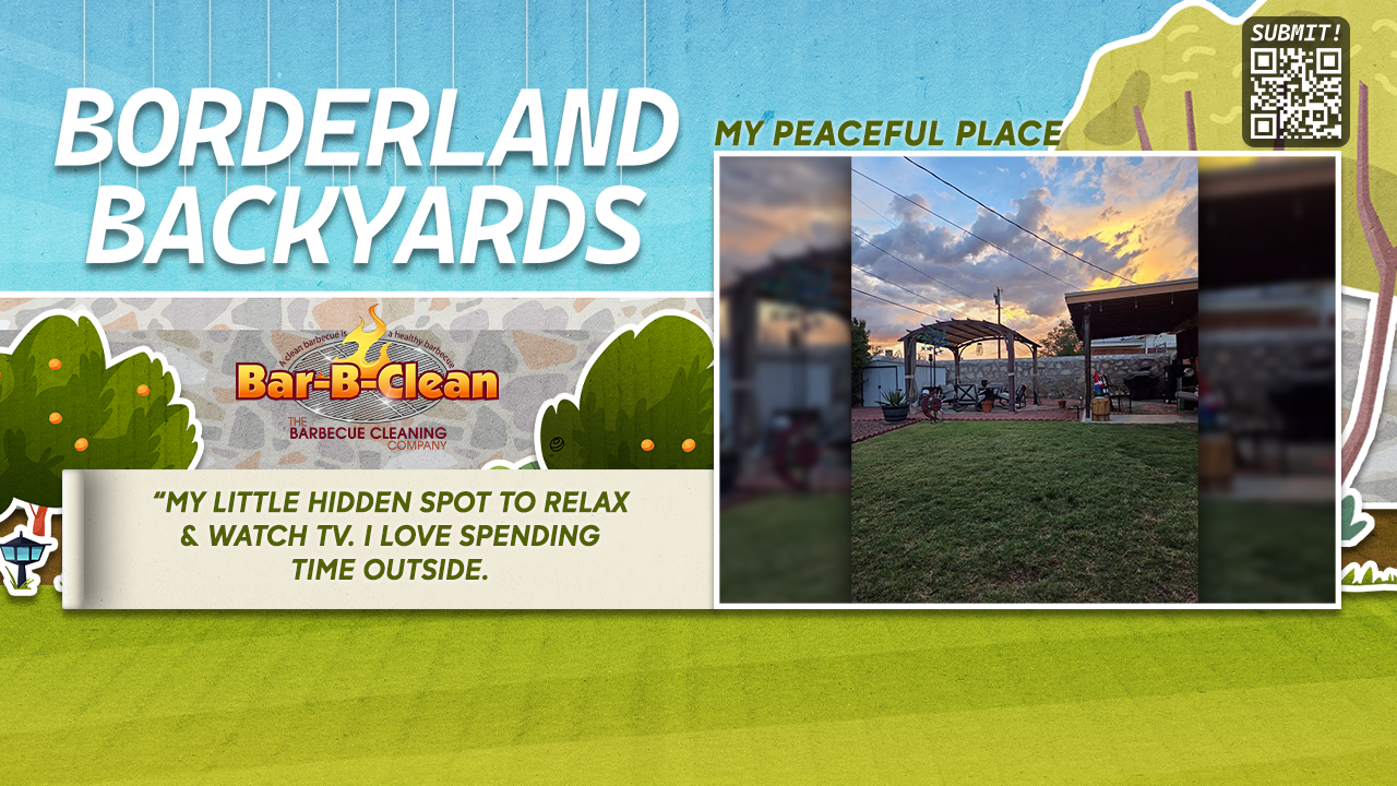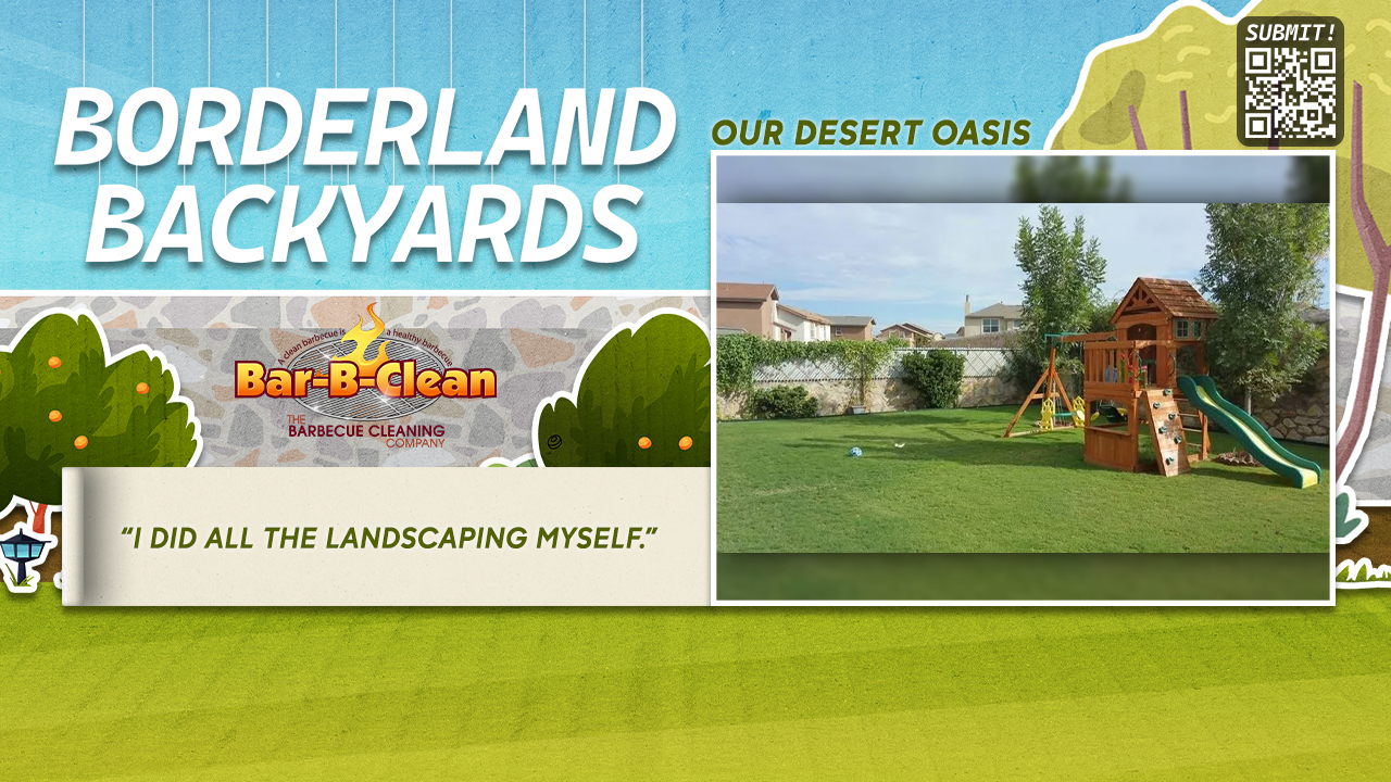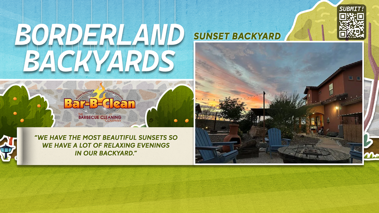 Don't forget, there is still plenty of time to enter our borderland backyards photo contest, sponsored by Bar-B-Clean..