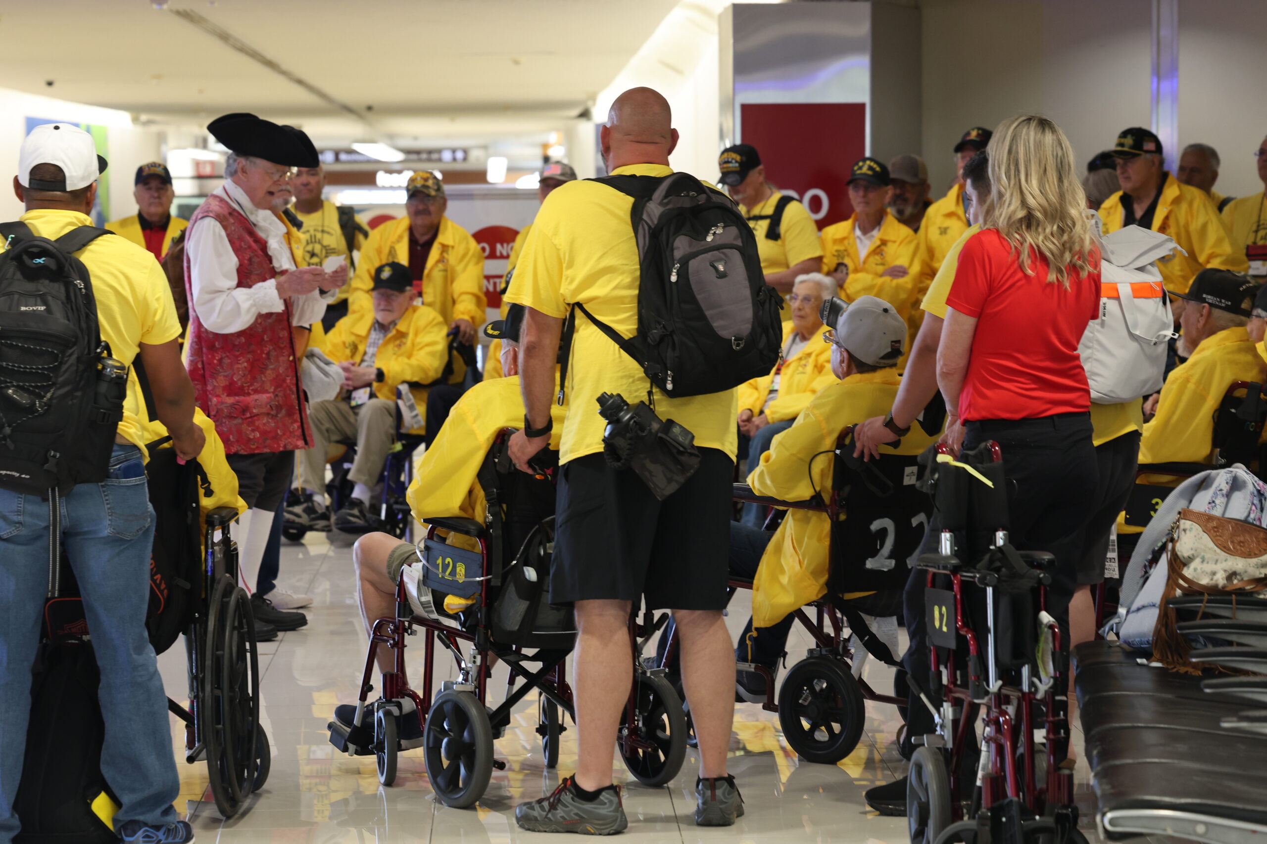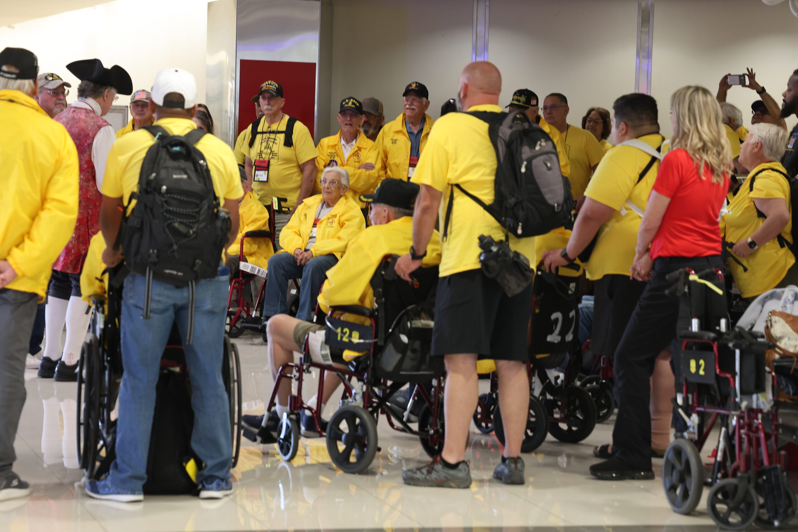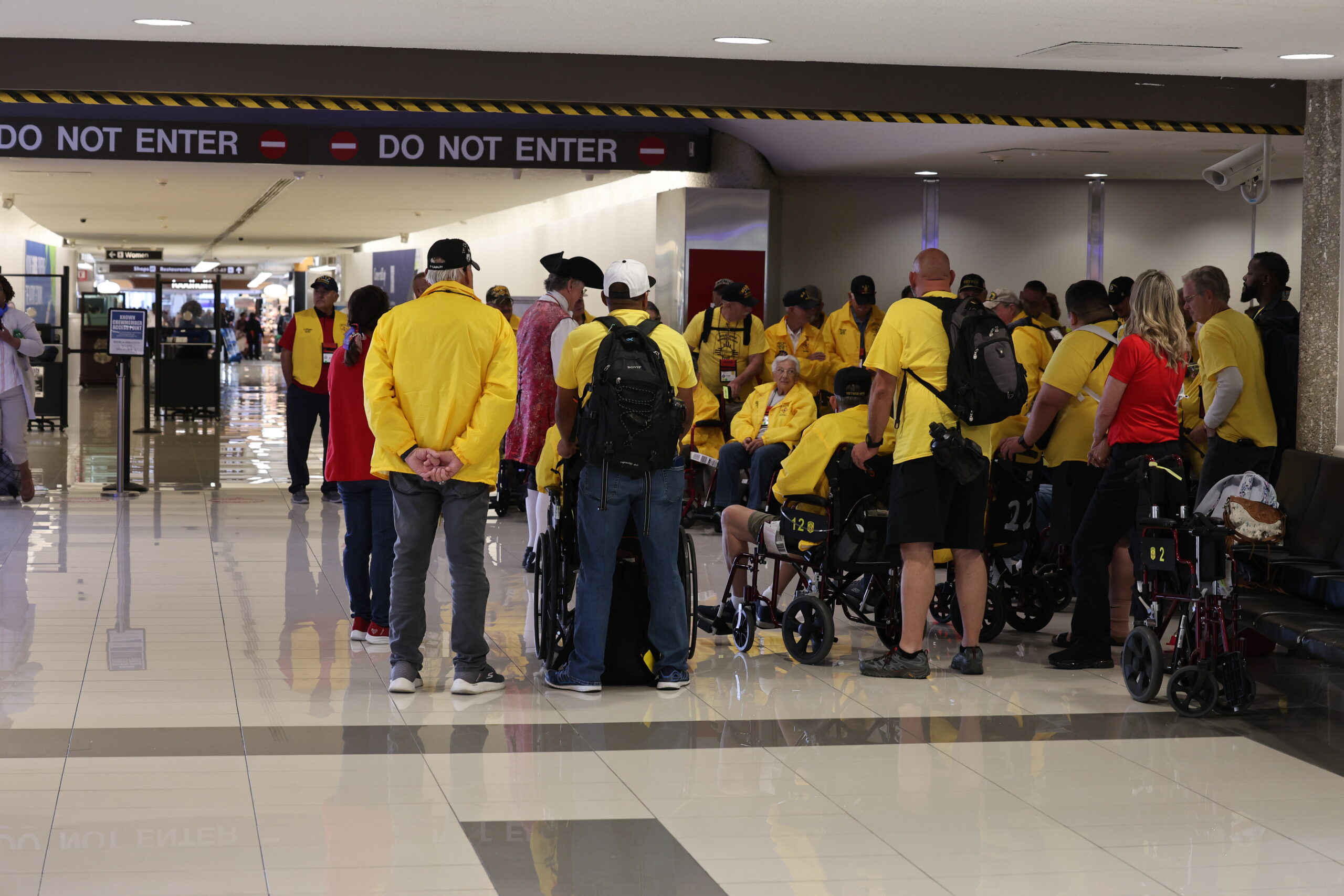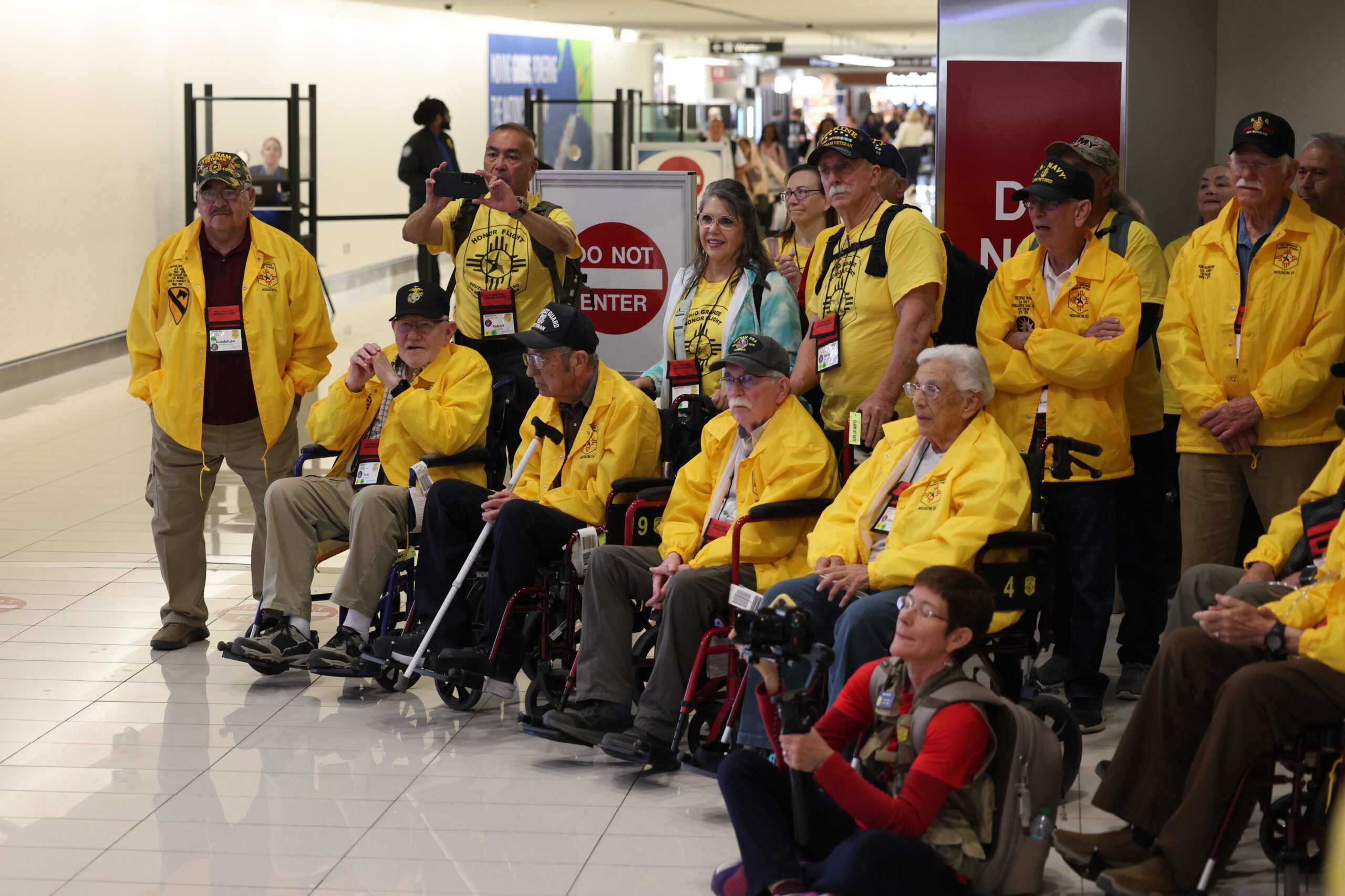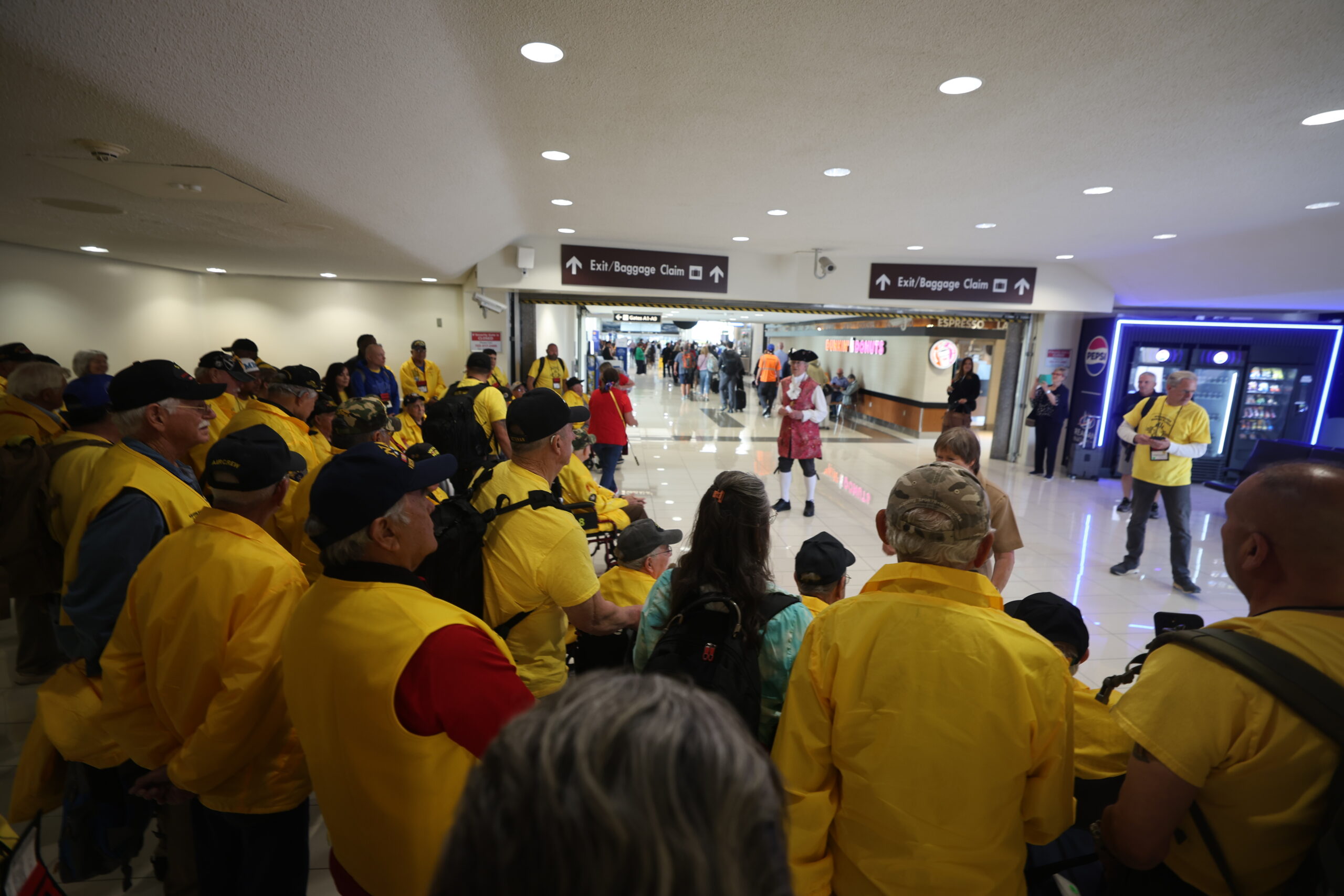Arriving at Gate 85, the Rio Grande Honor flight with veterans Korea and Vietnam, were thanked for their service.