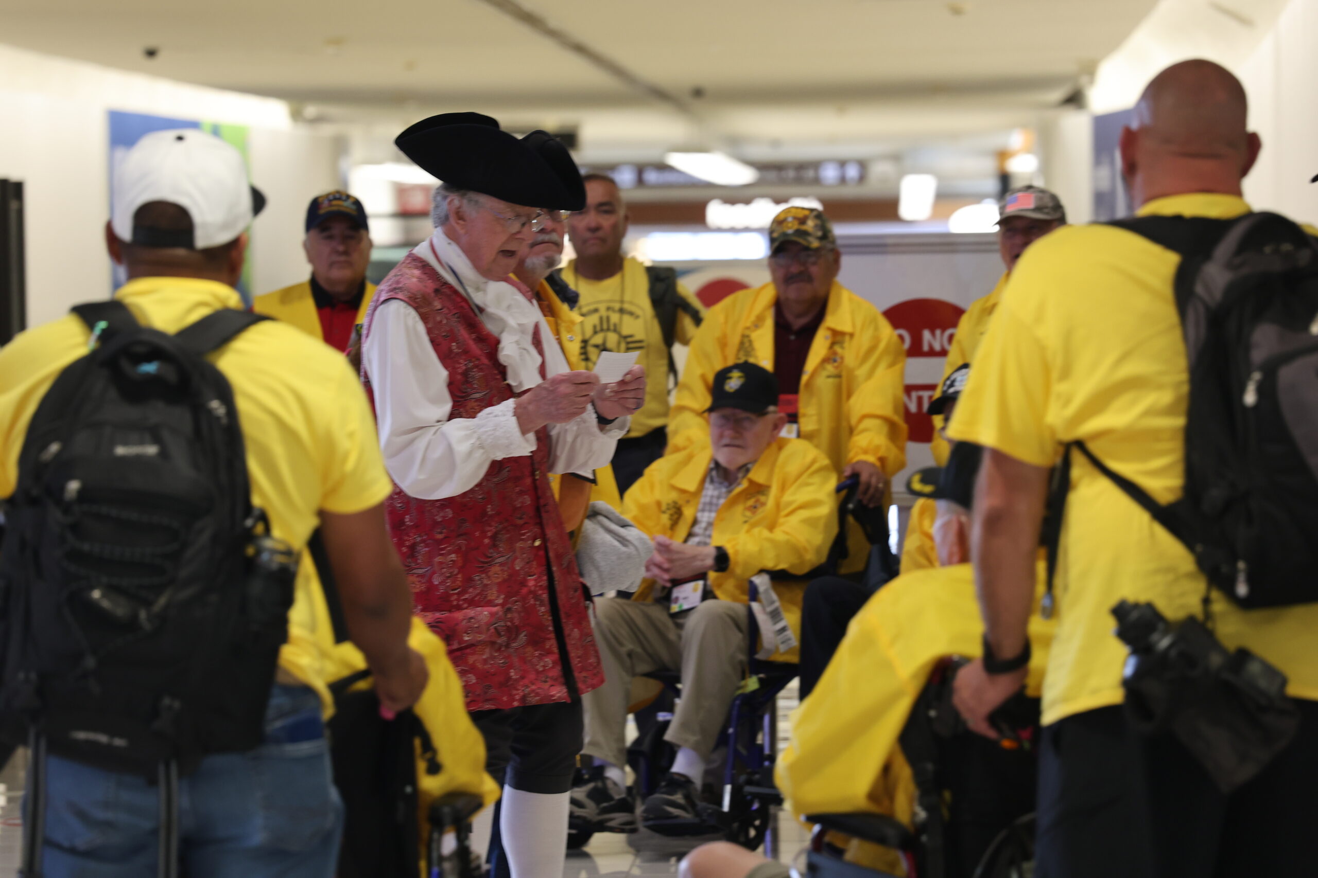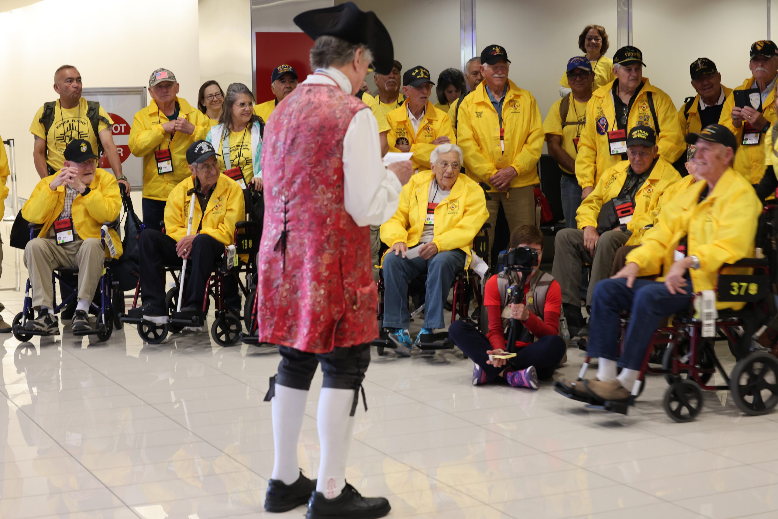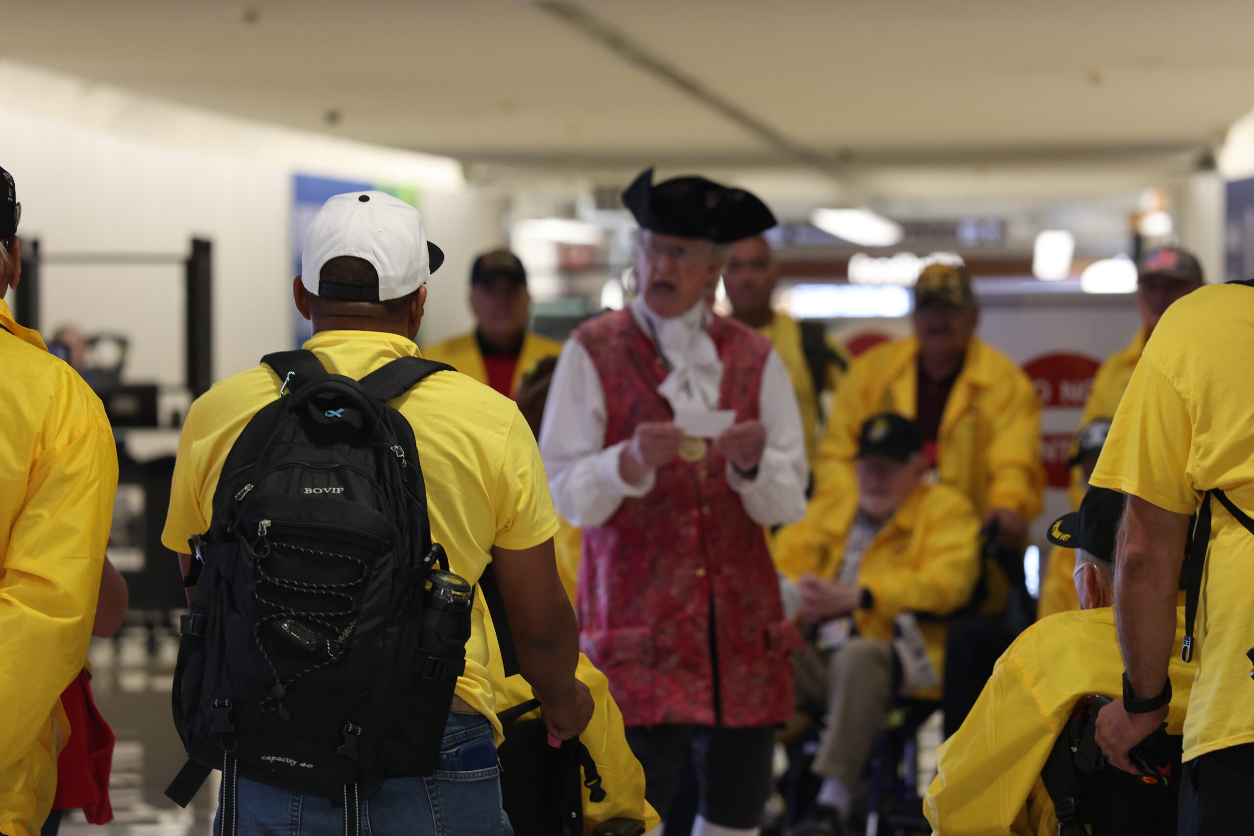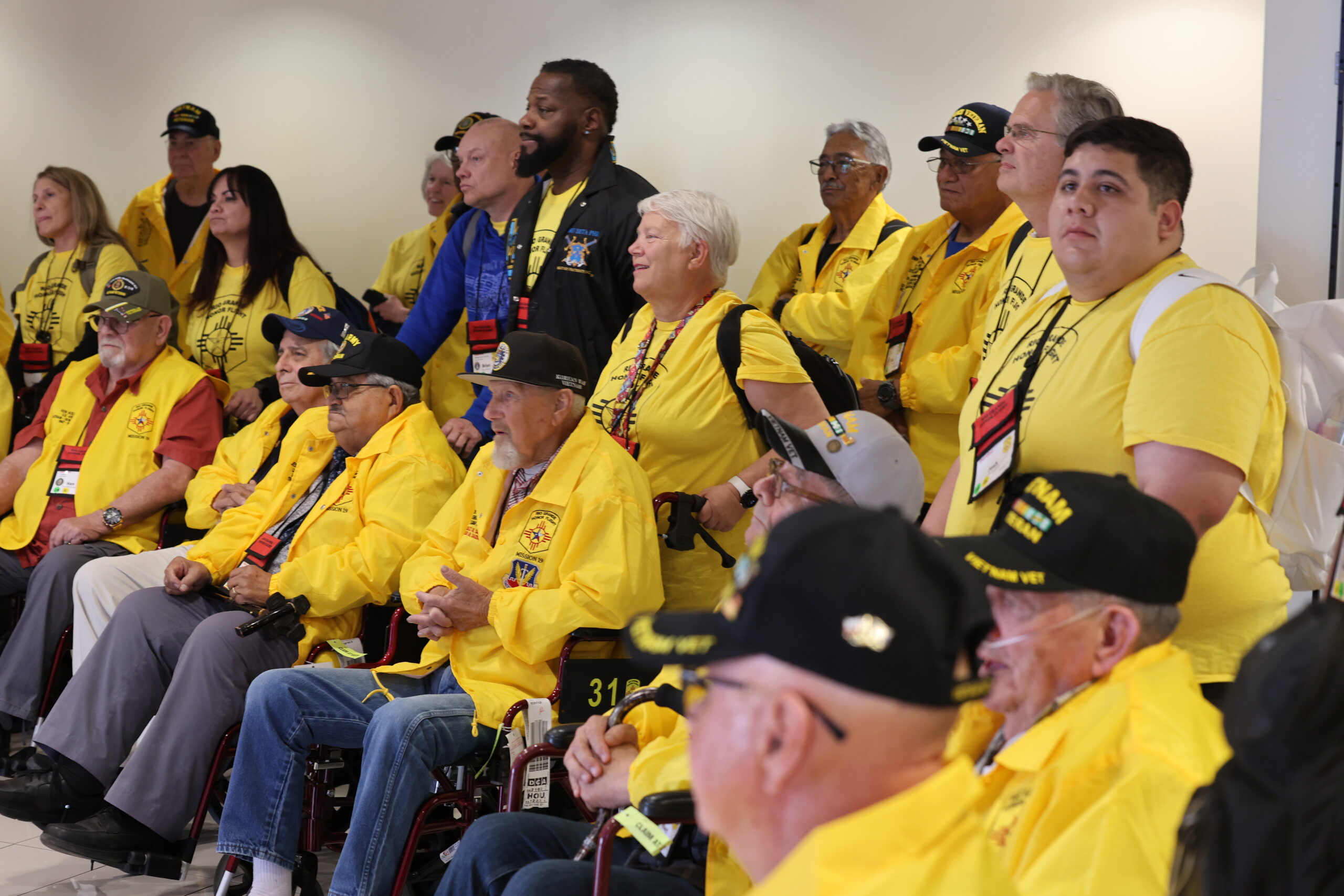 Arriving at Gate 85, the Rio Grande Honor flight with veterans Korea and Vietnam, were thanked for their service.
