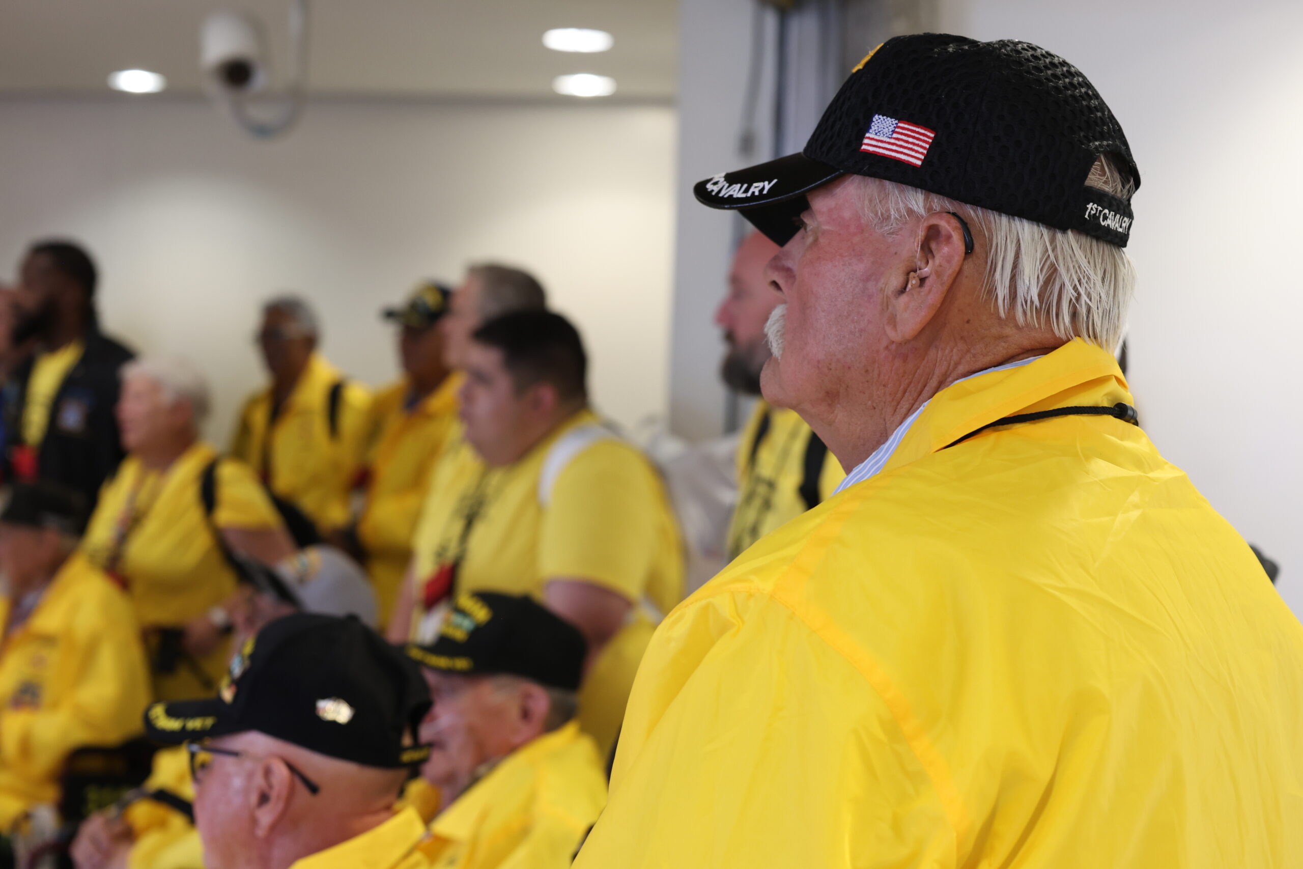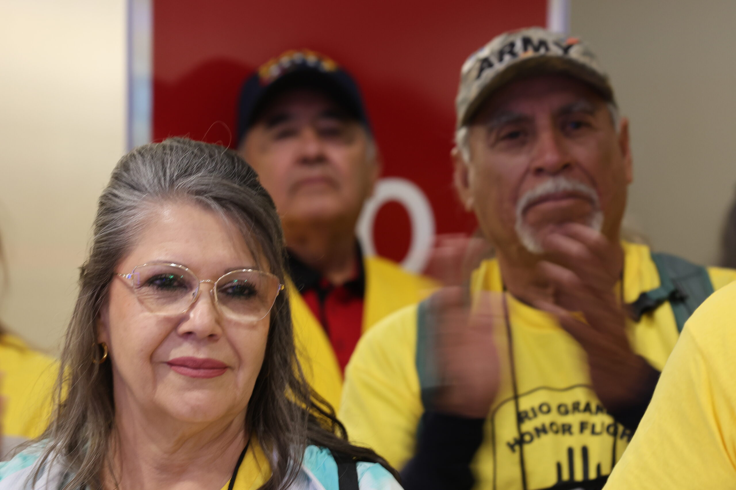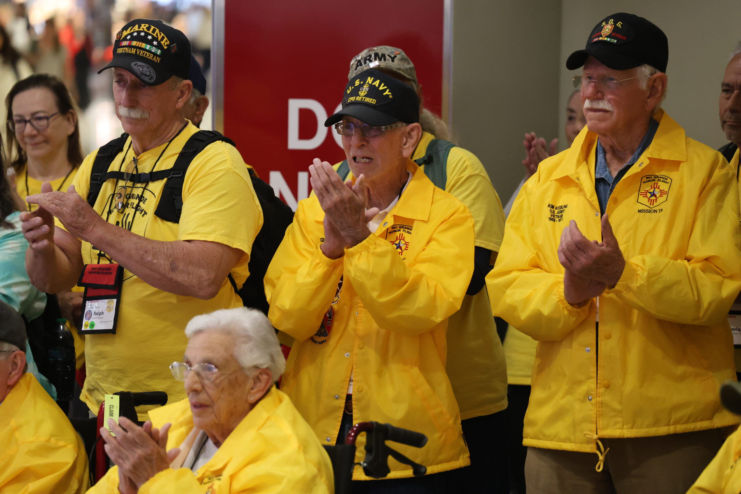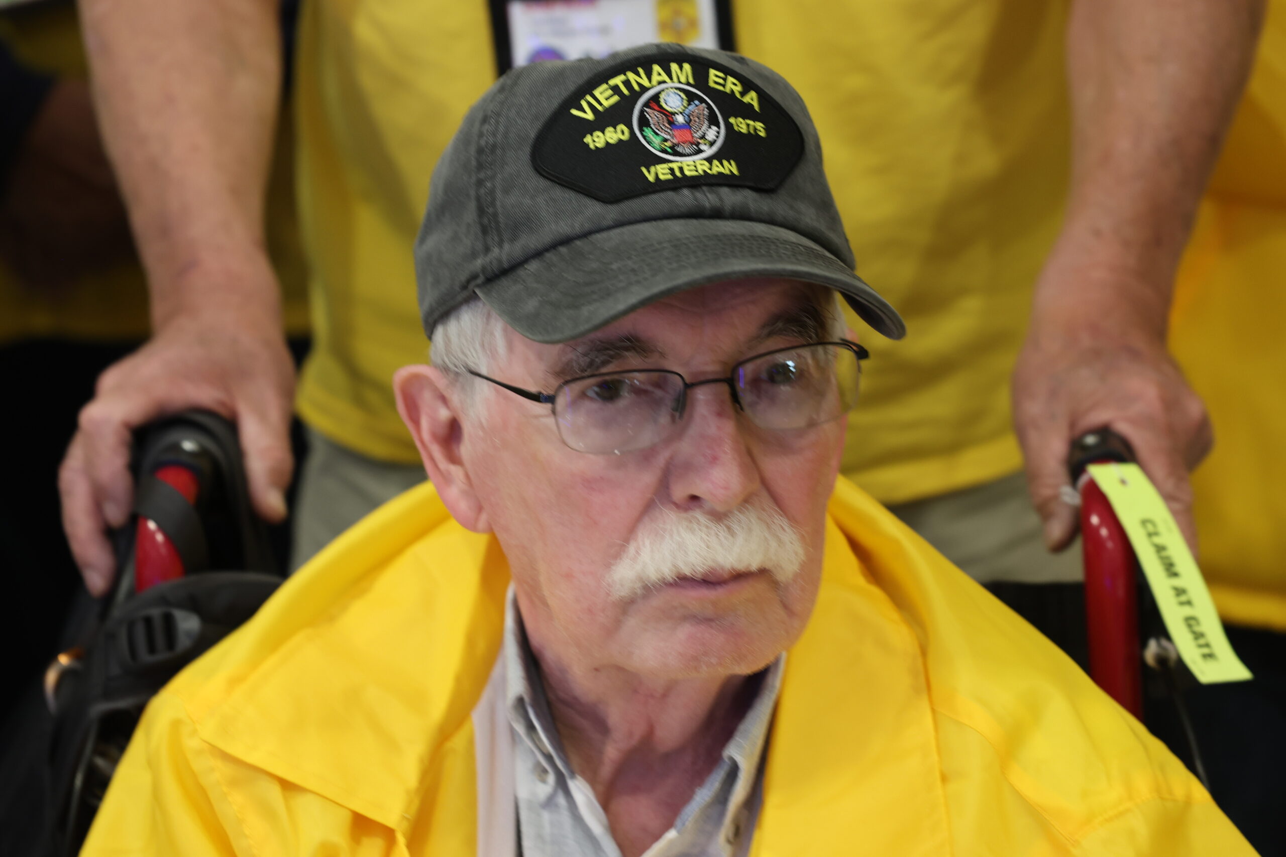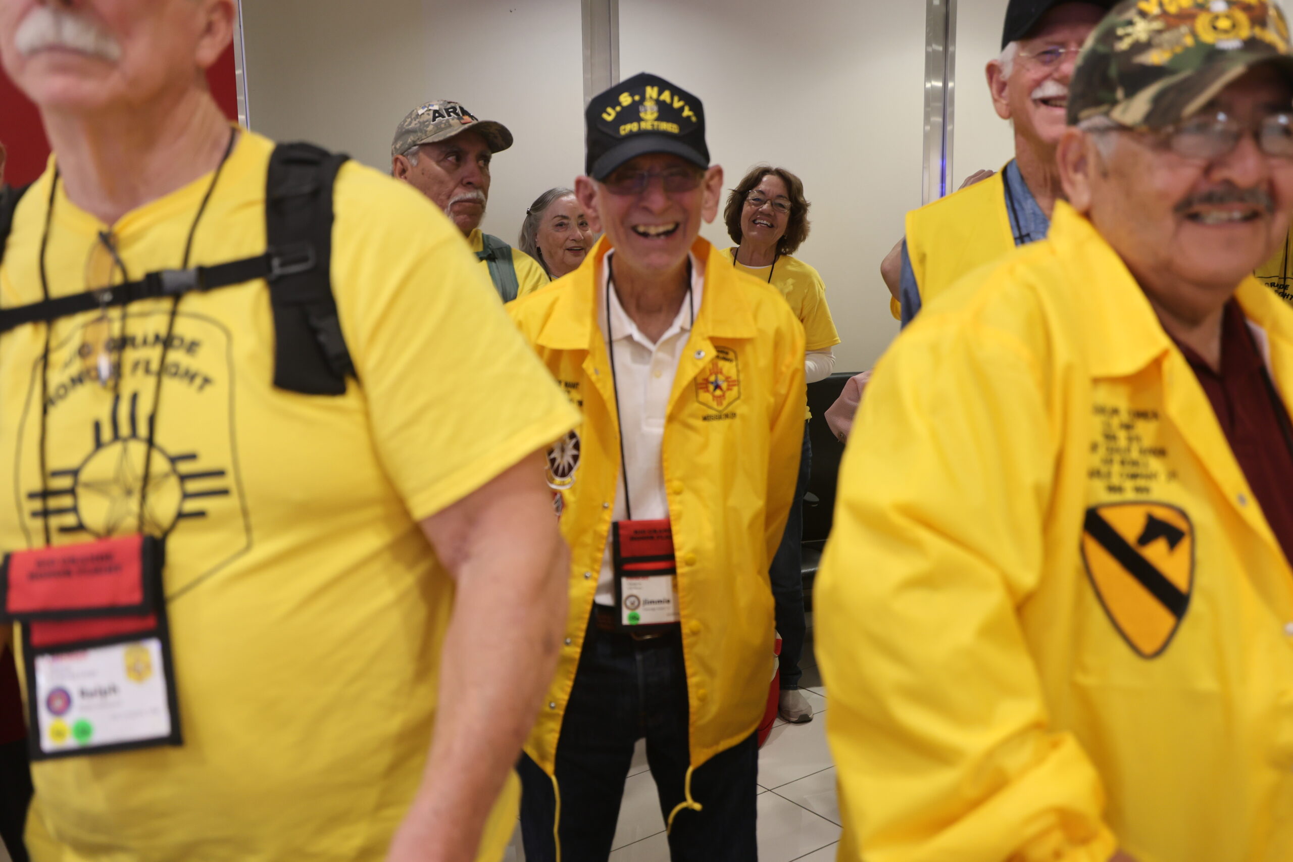 Arriving at Gate 85, the Rio Grande Honor flight with veterans Korea and Vietnam, were thanked for their service.