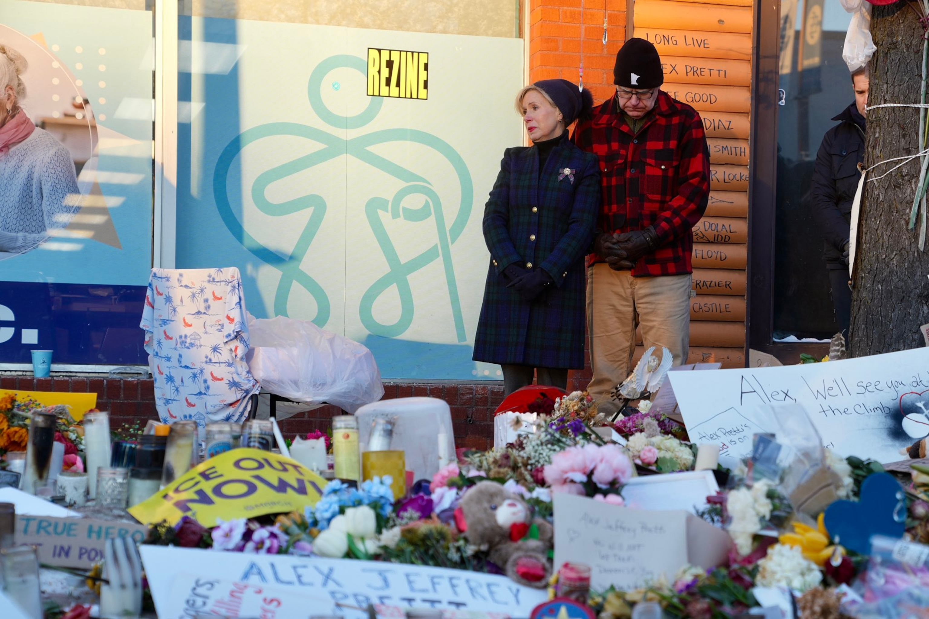 Minnesota Gov. Tim Walz visited the memorial for Alex Pretti Wednesday morning, telling ABC News correspondent Matt Rivers, "We’re just personally paying our respects, my wife and I."