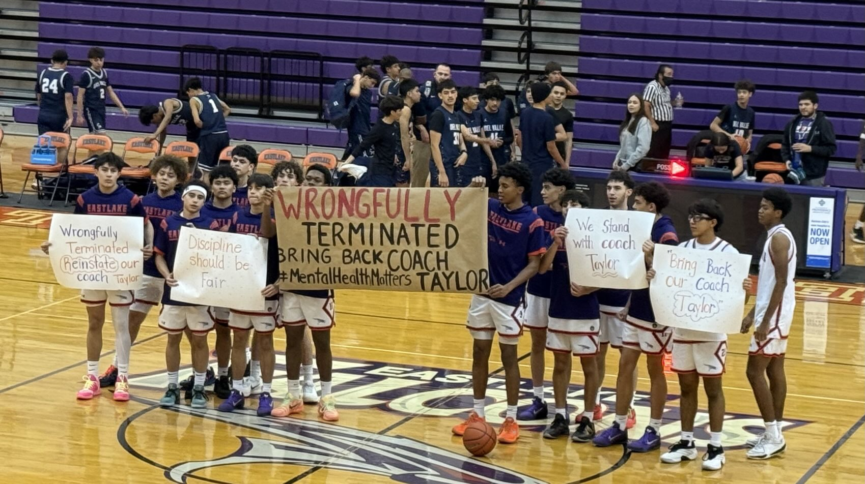 After he was relieved, his team was photographed at a game holding posters that read "Wrongfully terminated... bring back Coach Taylor... #MentalHealthMatters."