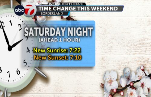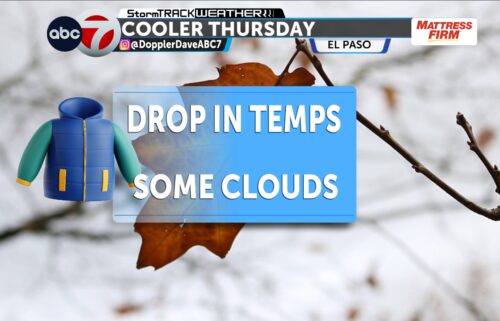 We will have plenty of sunshine throughout the week ahead, but a few clouds are expected too. On Friday, we will have a small chance of rain returning to the Borderland. We've been monitoring the chance for a few days now, which is a good signal for the potential. We will continue to keep you afloat of the strong winds tomorrow and any increase in rain chances if it happens. Stay cool!