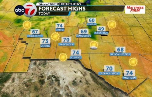 Temperature highs throughout the region will rest in the upper 50s to the low 60s. El Paso is expected to reach a high of 58 today. Las Cruces is expected to reach 56.