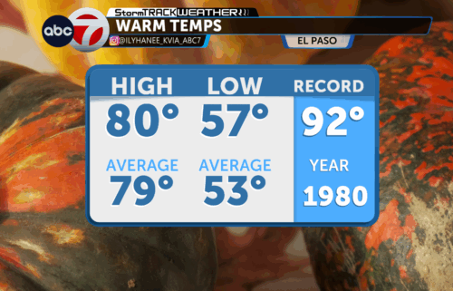 Along with the rainy weather we will continue to experience cloudy conditions and below average temps with a significant temperature drop. El Paso is expecting a high of 79, Las Cruces 76.
