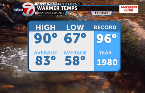 We will also see more clouds in the area and therefore cooler temps. We are looking to finally meet average temps today. El Paso is looking to reach a high of 93, Las Cruces 88.